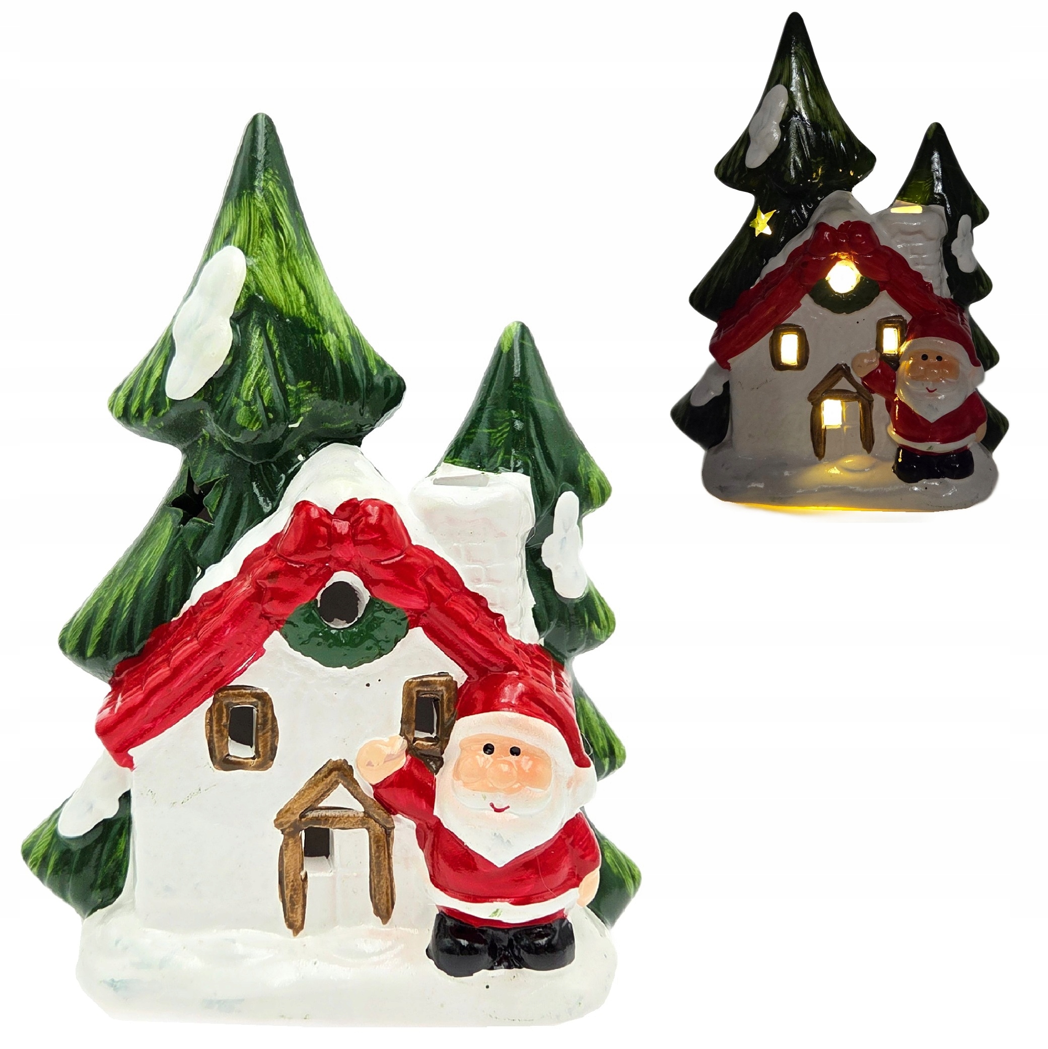КЕРАМІЧНИЙ БУДИНОК З ЯЛИНКОЮ, САНТА, БЛИСКУЧИЙ, LED РІЗДВЯНЕ СЕЛО, 16,5 СМ