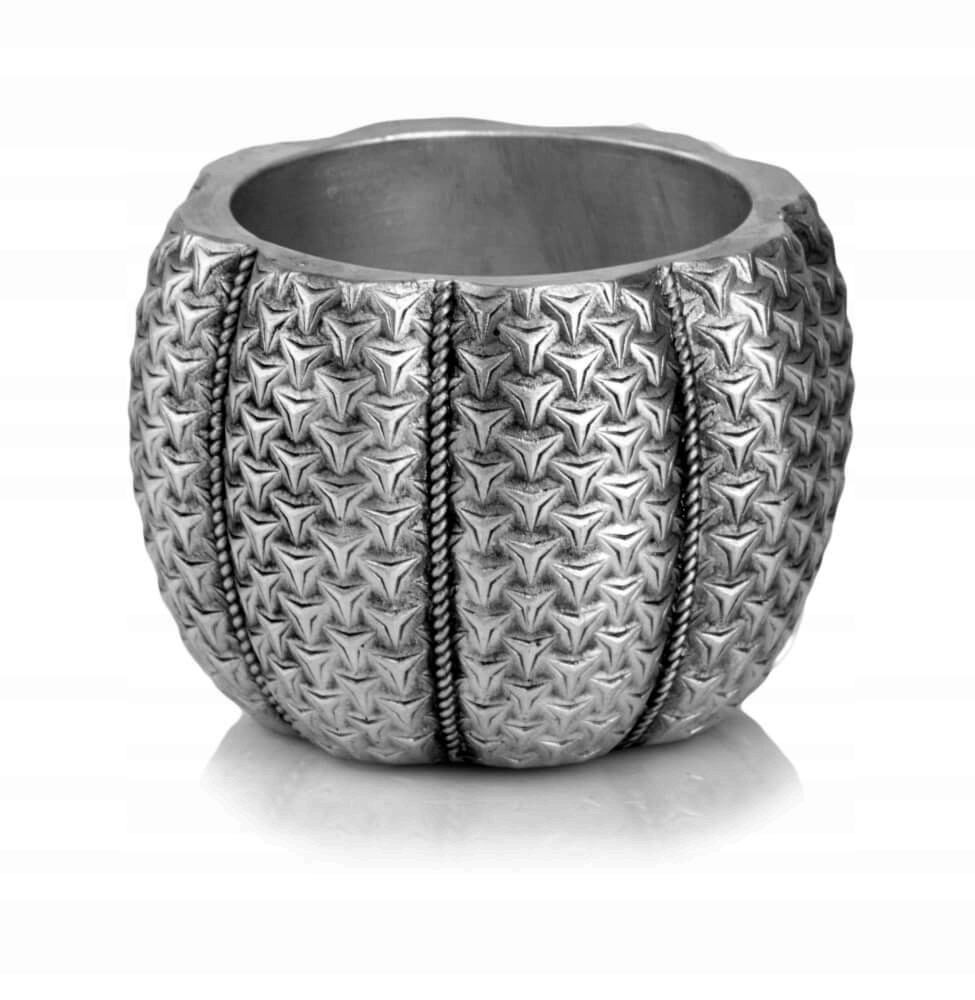 Квітковий горщик круглий з неглазурованої кераміки. Блискуча срібляста поверхня надає йому вишуканого сучасного вигляду, який ідеально вписується в різні інтер'єри. Ніжні, елегантні візерунки, що прикрашають горщик, підкреслюють його неповторний характер, вносячи в простір тонкий, декоративний акцент. Квітковий горщик ідеально підходить для домашнього інтер'єру, офісу та ресторану, створюючи стильну обстановку для рослин.