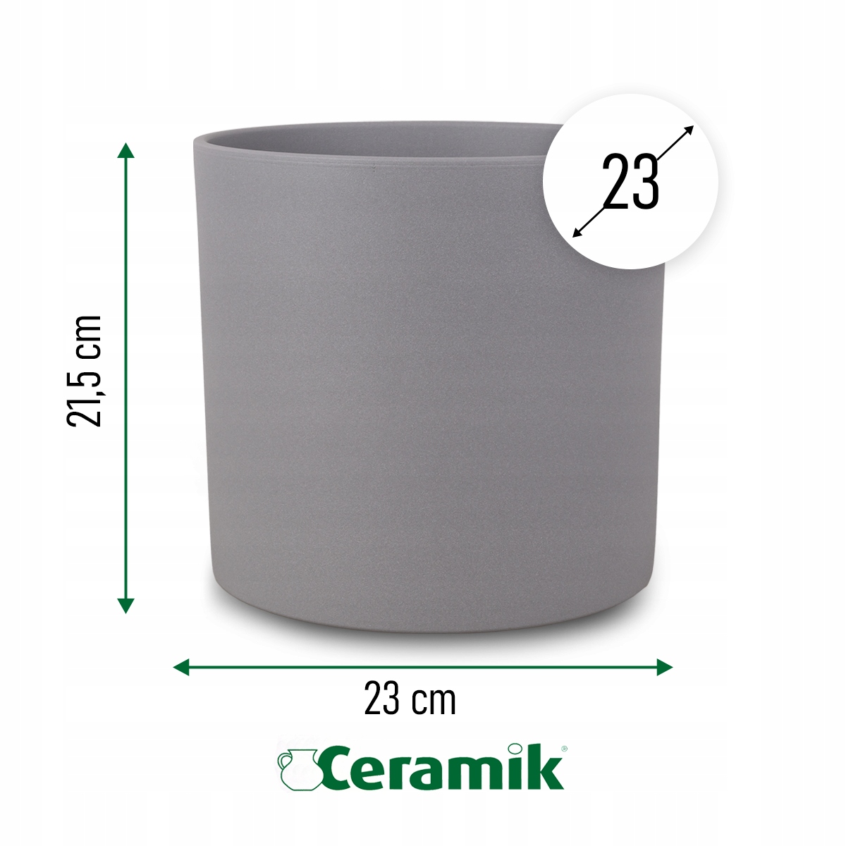 - Завдяки діаметру 23 см ідеально підходить для кожної конструкції інтер'єру, як салонів, так і великих офісів. Керамічний горщик водонепроникний і виробляється в Польщі з високоякісної кераміки , що є ідеальним вибором для любителів міцних та естетичних розчинів.