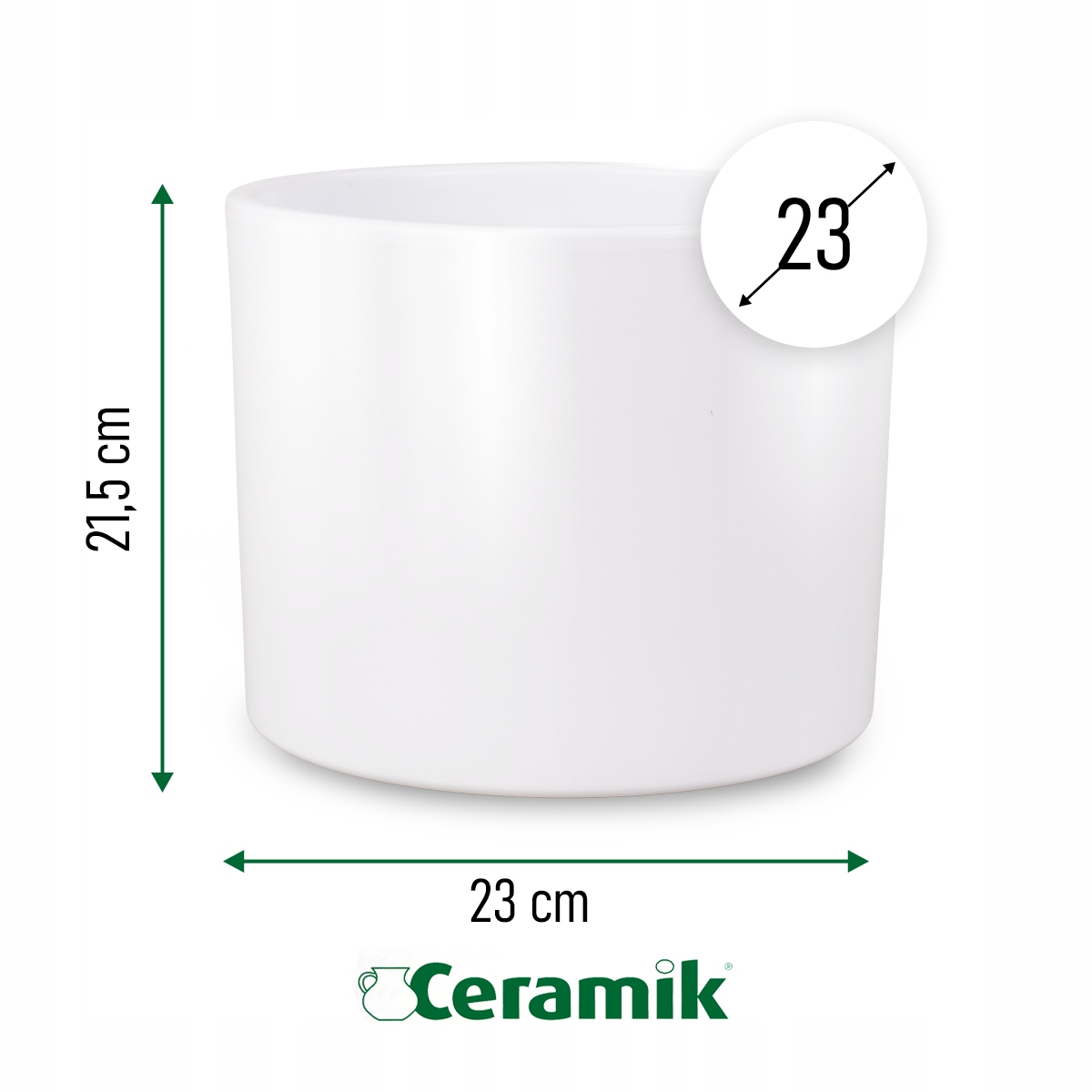 - Завдяки діаметру 23 см ідеально підходить до кожної домовленості, як салонів, так і великих офісів. Керамічний горщик водонепроникний і виробляється в Польщі з високоякісної кераміки , що є ідеальним вибором для любителів міцних та естетичних розчинів.