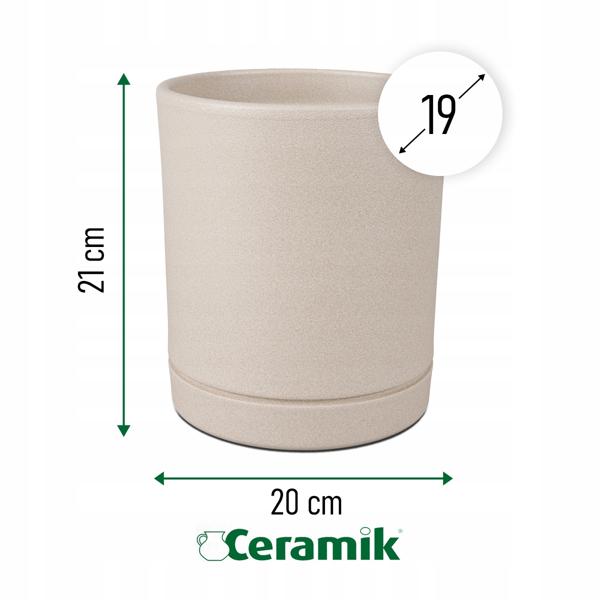 - Завдяки діаметром 19 см ідеально підходить до будь -якого розташування інтер'єру навіть з обмеженим простором. Керамічний горщик водонепроникний і виробляється в Польщі з високоякісної кераміки , що є ідеальним вибором для закоханих міцних та естетичних розчинів.