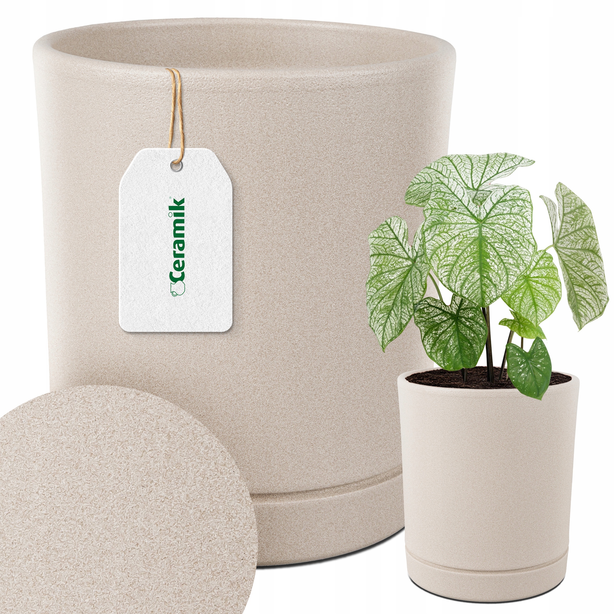 - керамічний горщик Ceramik Це ідеальне доповнення до кожної дизайну інтер'єру. його унікальний колір пісок і матова структура змушують його гармонійно вмістити як в сучасних, так і в більш традиційних просторах.