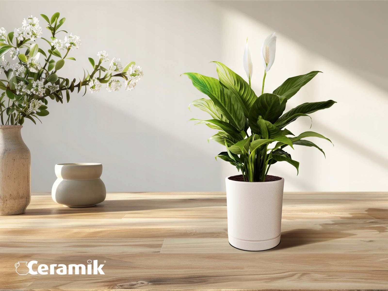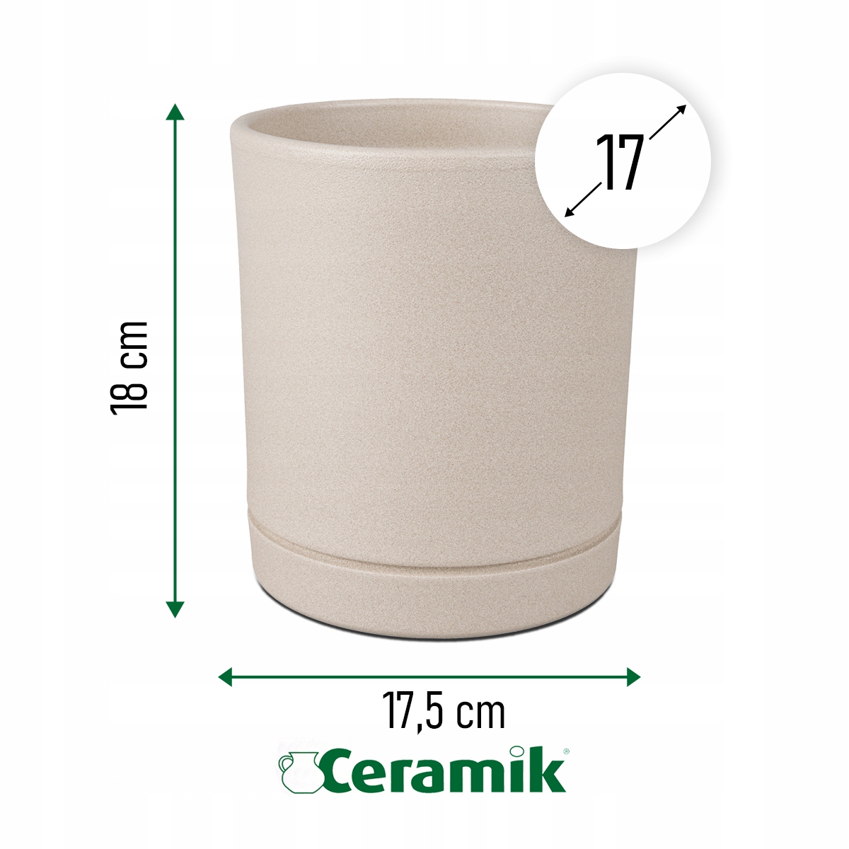 - Завдяки діаметром 17 см ідеально відповідає кожному розташуванню інтер'єру, навіть з обмеженим простором. Керамічний горщик водонепроникний і виробляється в Польщі з високоякісної кераміки , що є ідеальним вибором для закоханих міцних та естетичних розчинів.