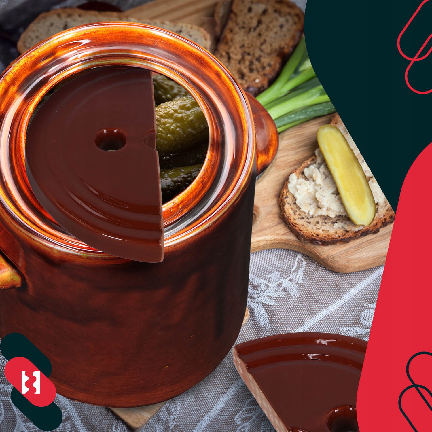 Функціональний об'єкт був виготовлений з кам'яного посуду і використовується для натискання овочів під поверхнею соку, що наповнює посудину, наприклад. бочка. Каміонка не тільки виглядає добре, але й стійкий до подряпин та інших пошкоджень.