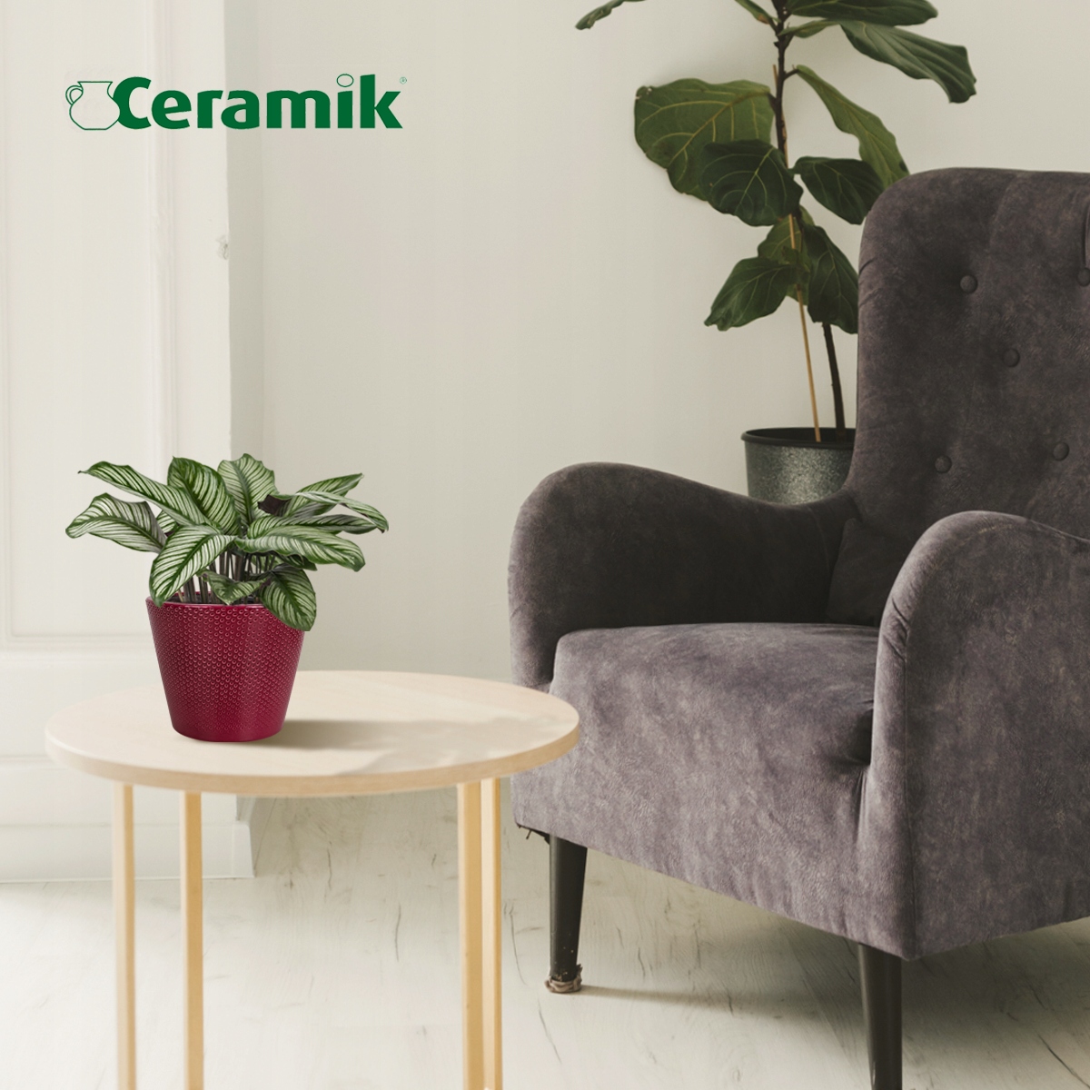 Ця модель особливо рекомендується для любителів середніх рослин, таких як Zamiokulkasy, Filodendrons або Kalatee 'orbifolia'. їх різноманітні форми та кольори ідеально контрастують з рубіновим, візерунковим покриттям , створюючи ефективне оздоблення інтер'єру.