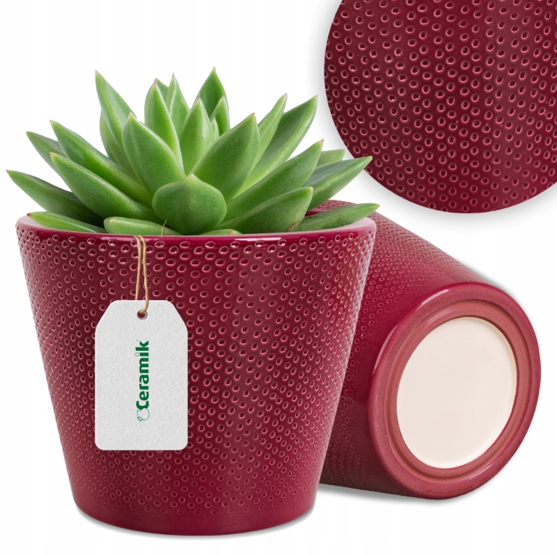 - його інтенсивна ruby колір і крапка дозволяють розмістити в ньому багато популярних рослин, , таких як Zamiokulkas, Dracaena, Aglaonema або Alocasia. Ви також можете успішно зберігати в ньому штучні квіти та рослини.