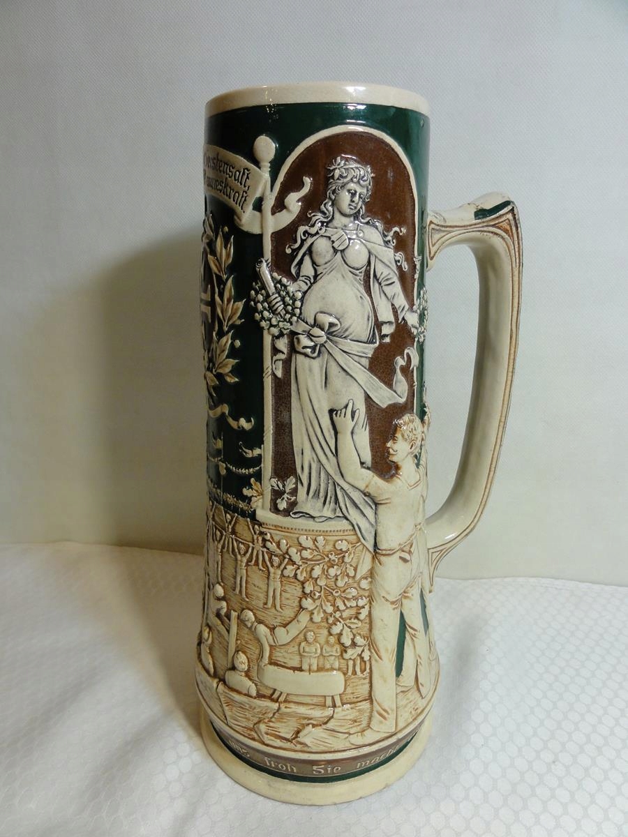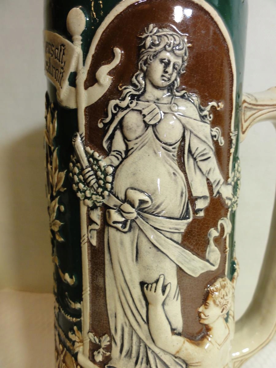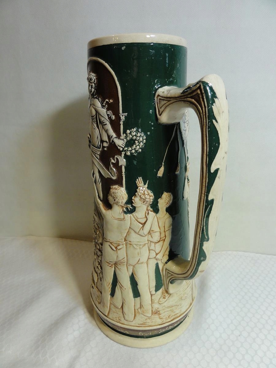 *великий керамічний глечик із рельєфною жанровою сценою, розписаний вручну,