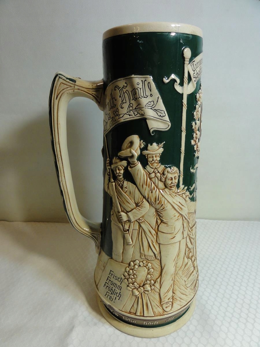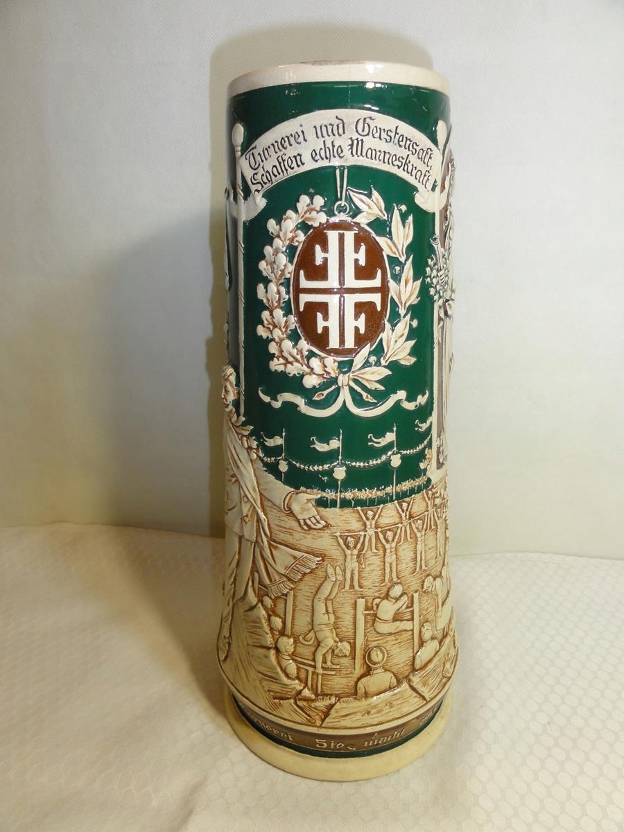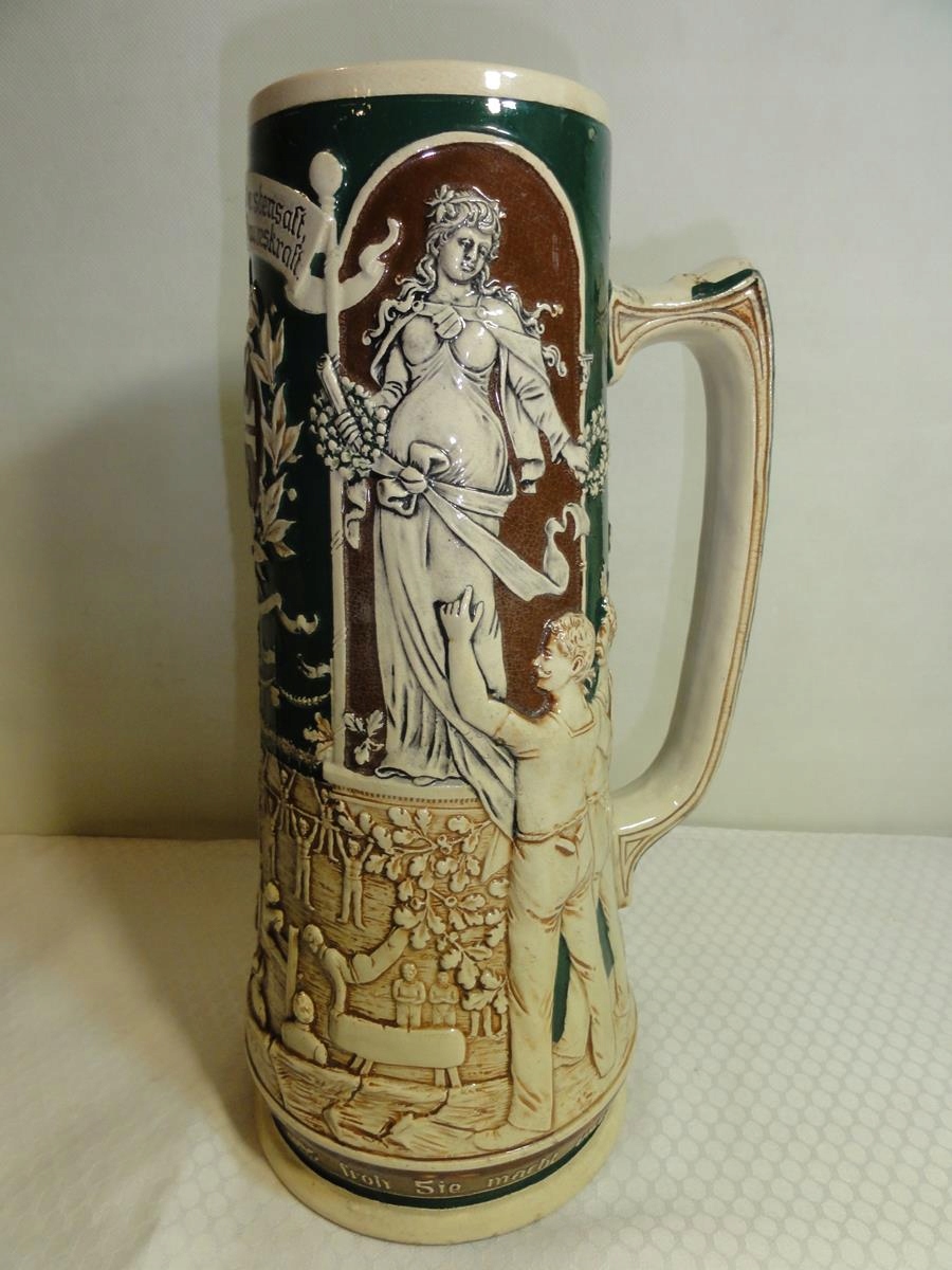 *великий керамічний глечик із рельєфною жанровою сценою, розписаний вручну,