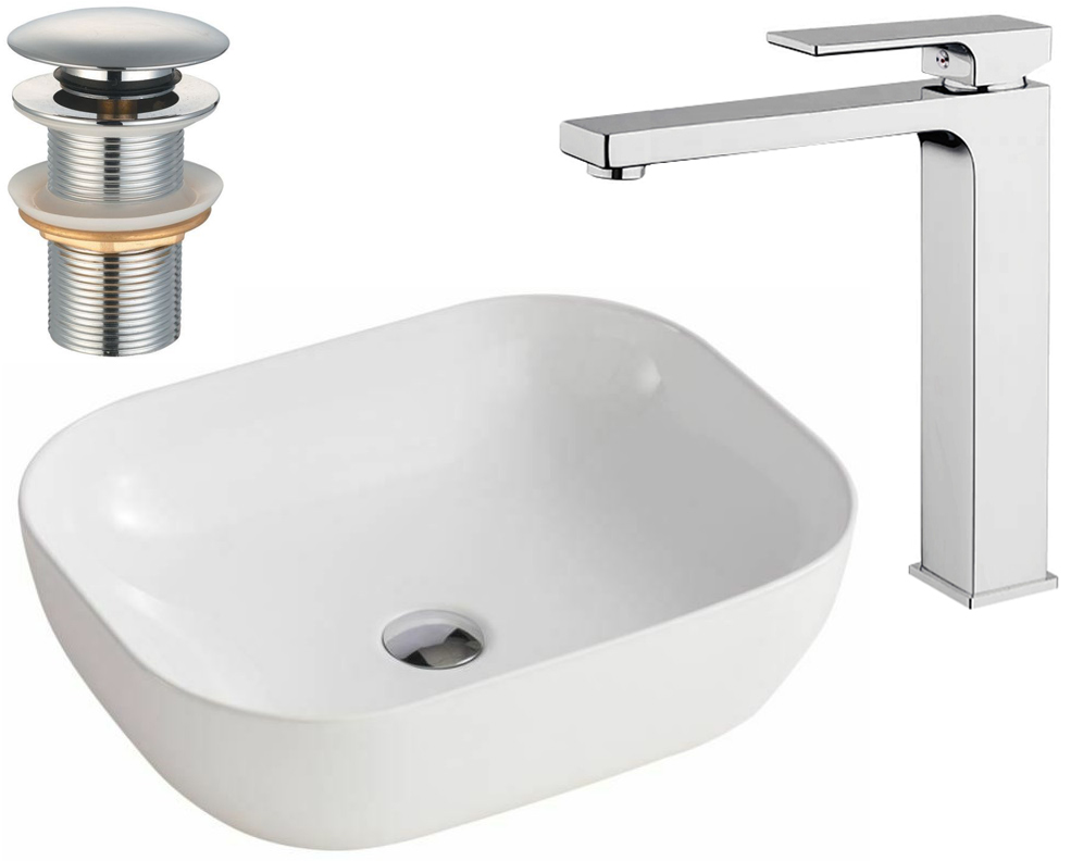 Керамічний умивальник + кран + пробка-набір 3в1
