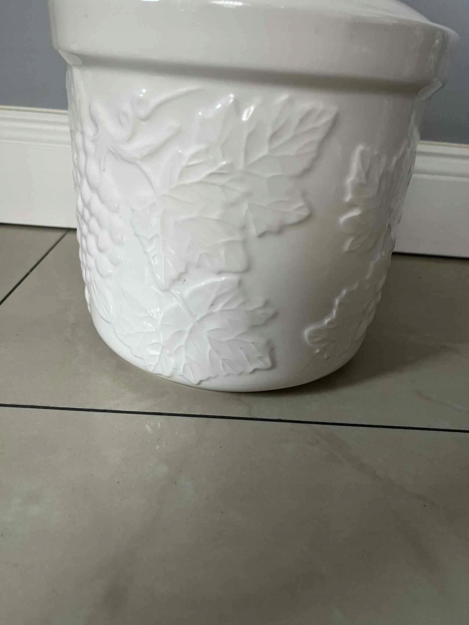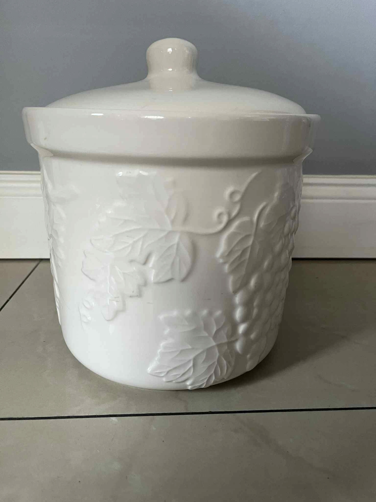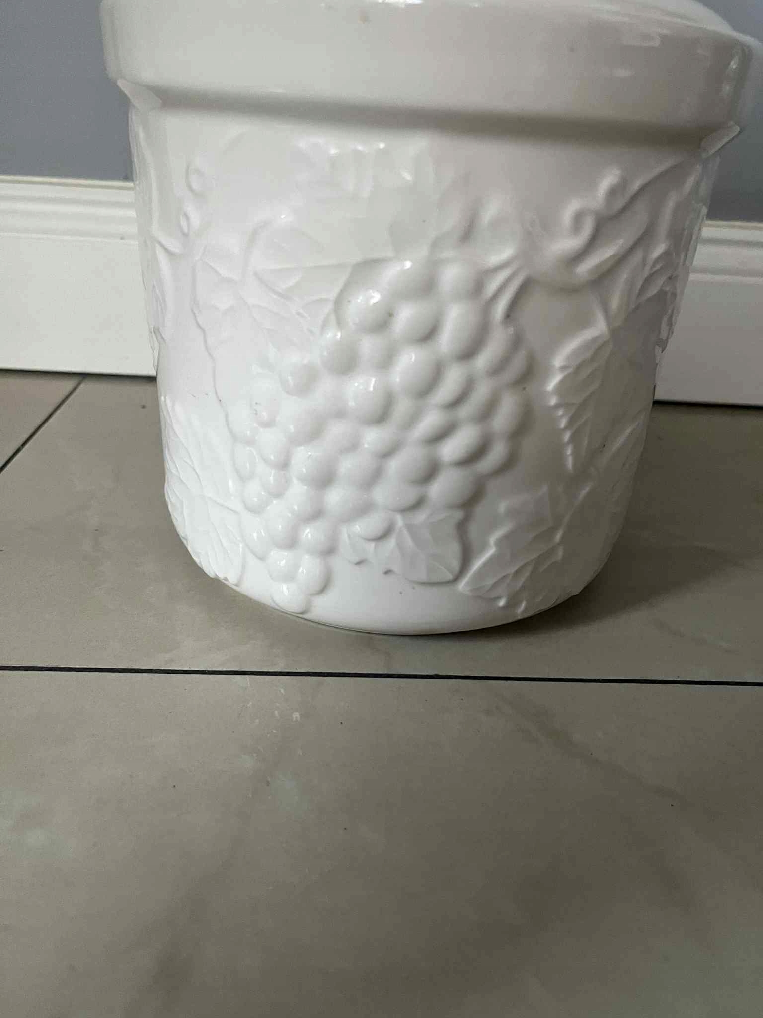 Керамічний великий харчовий контейнер білого кольору з тисненням фруктів