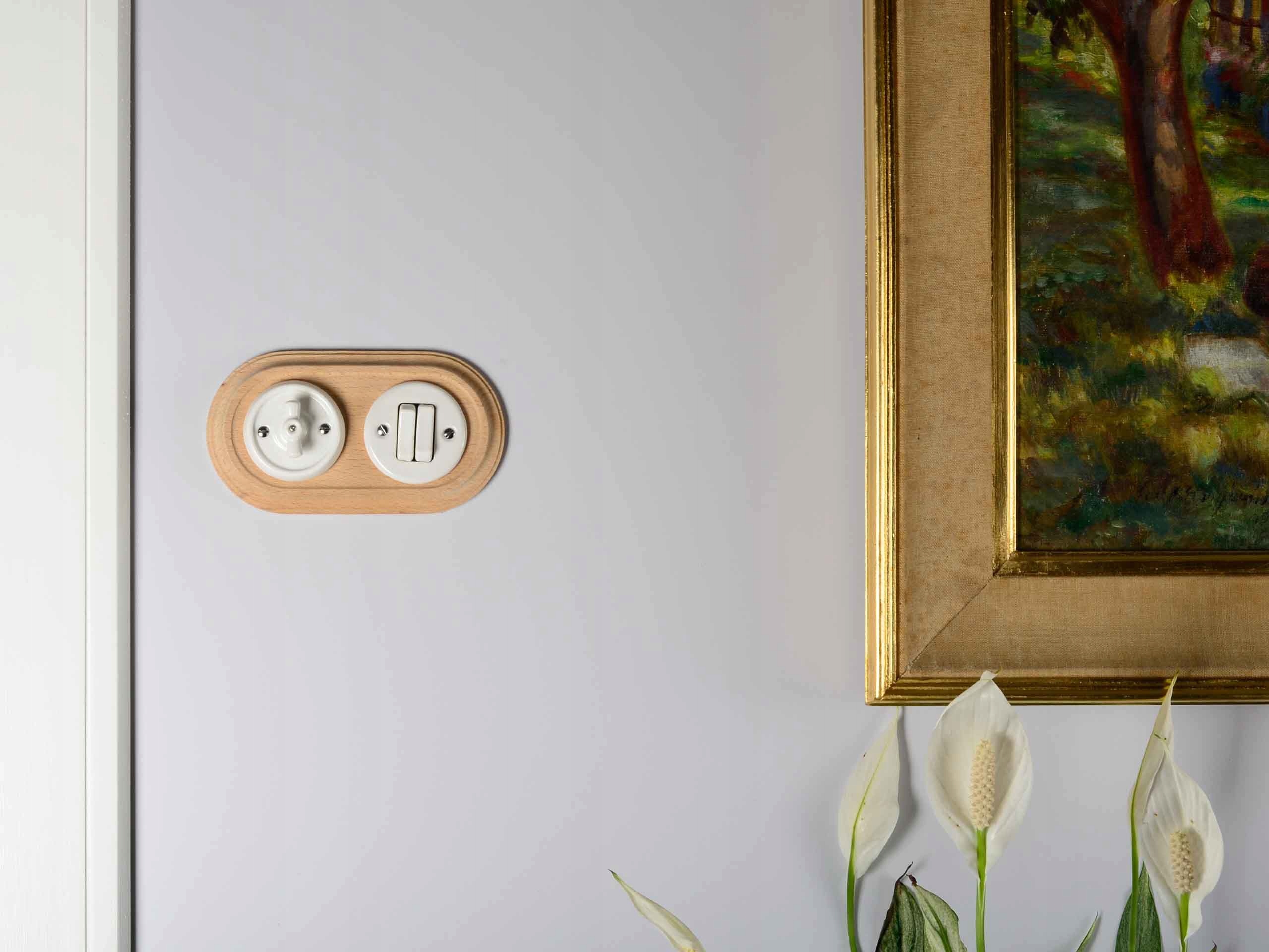 Вимикачі та розетки продаються в комплекті з одинарними керамічними рамками або БЕЗ рамок (дерев’яні одинарні рамки доступні на інших наших аукціонах) . Якщо ви бажаєте створити комплект з кількох елементів (розеток, вимикачів), то варто придбати розетку чи вимикач без рамки та придбати подвійну, потрійну чи четверну рамки. У цій серії ми маємо керамічні та дерев’яні рами для прихованого монтажу обладнання.