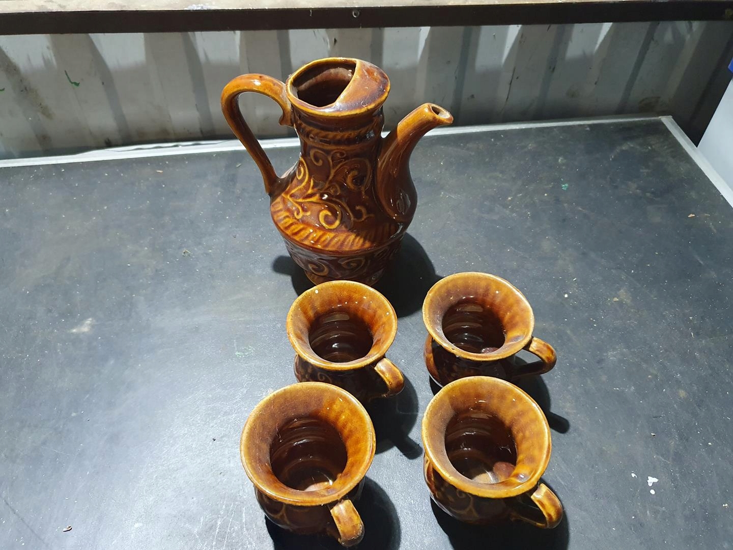 hiway Hirlla> Hielly Hirlles Hillo! Аукціон - це набір коричневої кераміки з періоду PRL. Стан, як на доданих фотографіях.