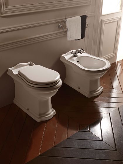 Пропонуємо унітаз стоячий під бачок прихованого монтажу від відомої італійської компанії KERASAN, модель RETRO, символ 1016. У комплект входить оригінальне сидіння KERASAN RETRO, символ 109001.