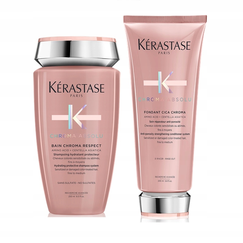 Набір включає: • Ванна Kerastase Chroma Absolu Respect Bain 250 мл, • Кондиціонер Kerastase Chroma Absolu Cica Chroma Fondant 200мл.