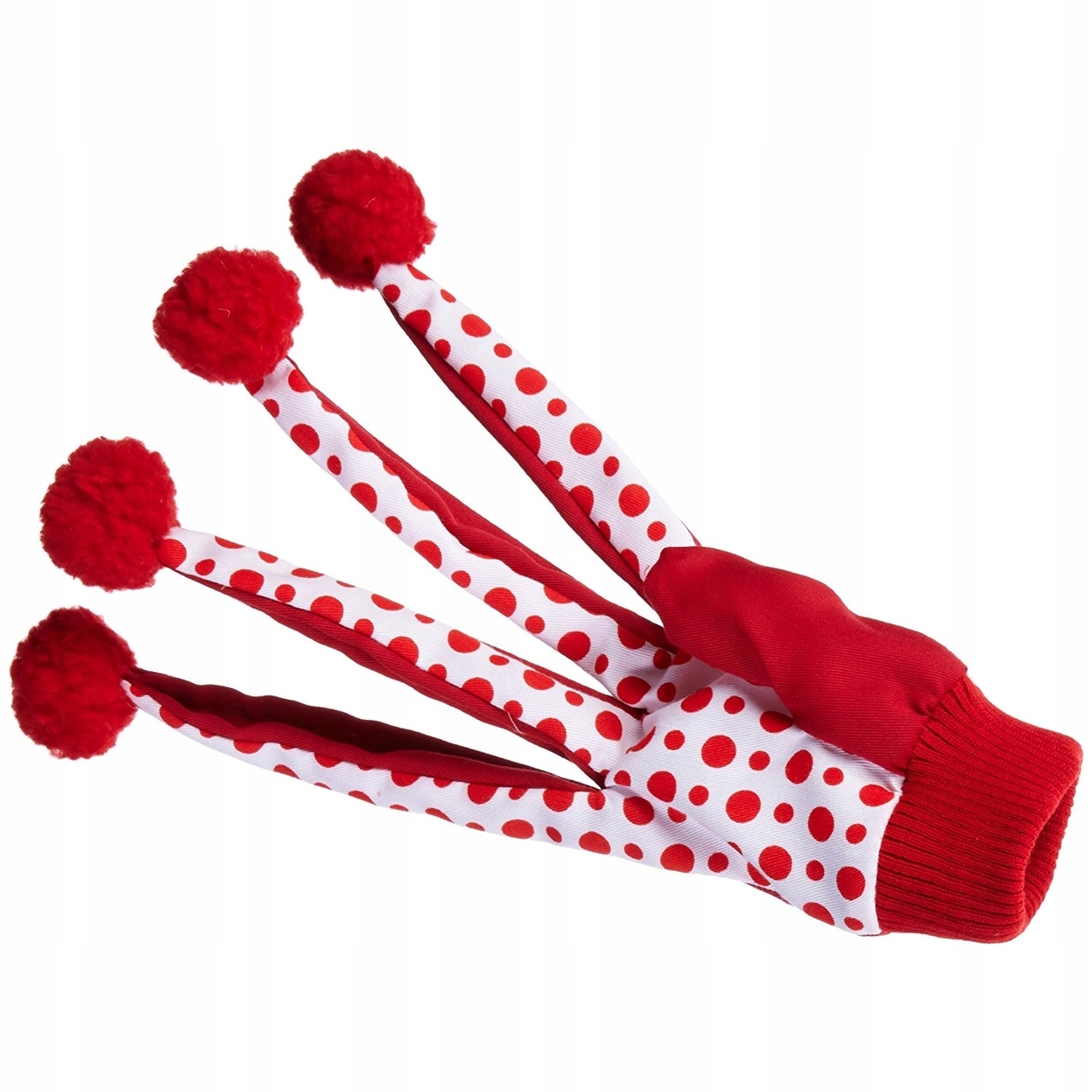 ВЕЛИКА ЧЕРВОНА РУКАВИЧКА З ПОМПОНАМИ І БРЯСКАЛЬЦЕМ - іграшка для кота