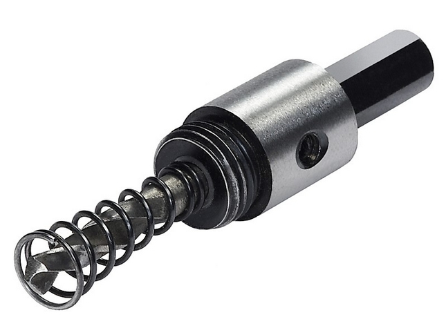Направляюче свердло оснащене пружиною, яка виштовхує вирізаний шматок листового металу. Пілотне свердло дозволяє робити отвори в жолобах різного діаметру.