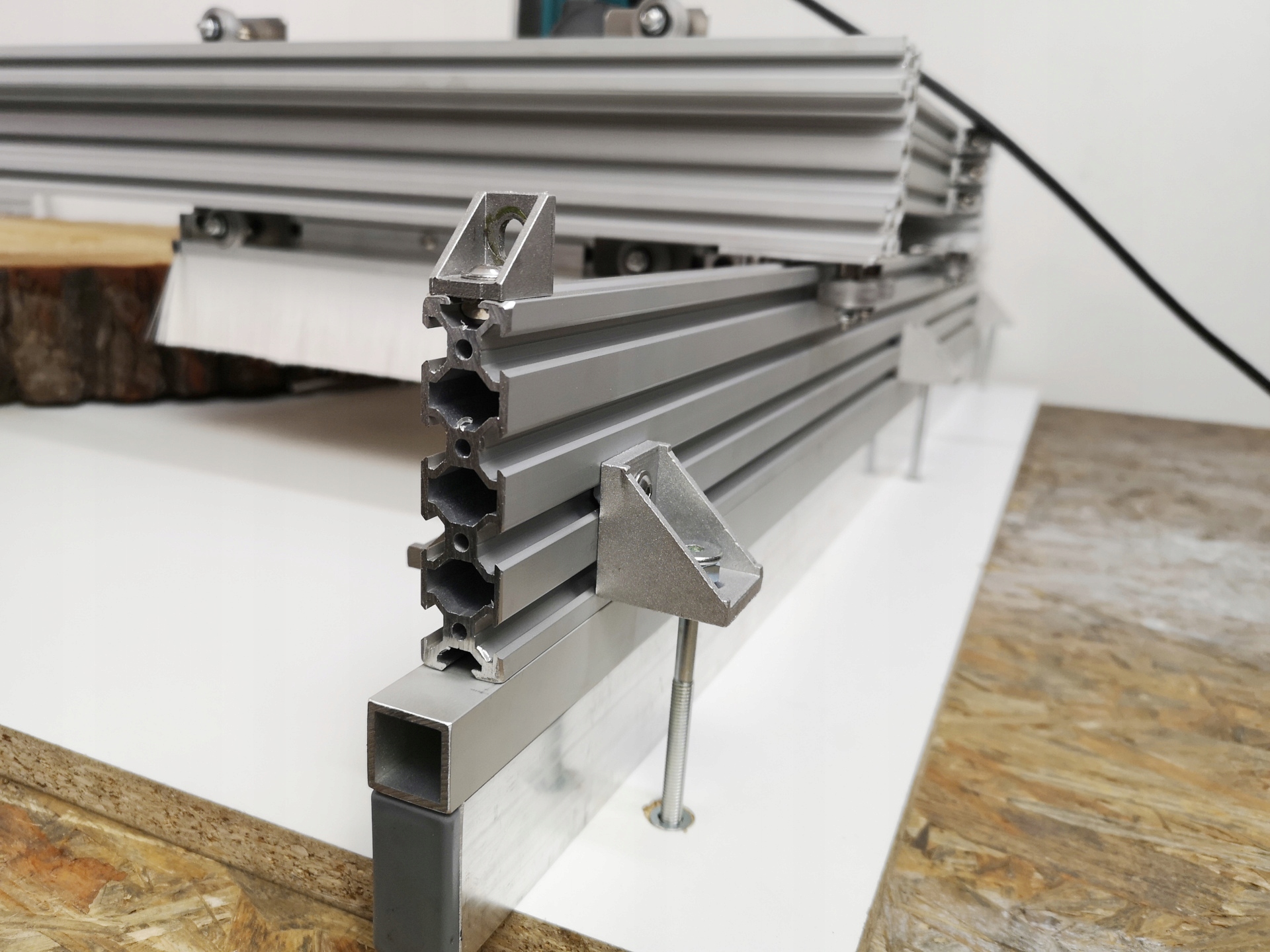 - Профілі регулювання висоти (один набір включає два профілі 40x20 і два профілі 20x20. Профілі, розміщені безпосередньо під рубанком, піднімають всю конструкцію вгору, що дає змогу фрезерувати вищі матеріали. Однак, коли вони розміщені безпосередньо під обробленим матеріалом, він піднімає його, що дає змогу фрезерувати нижчі матеріали: