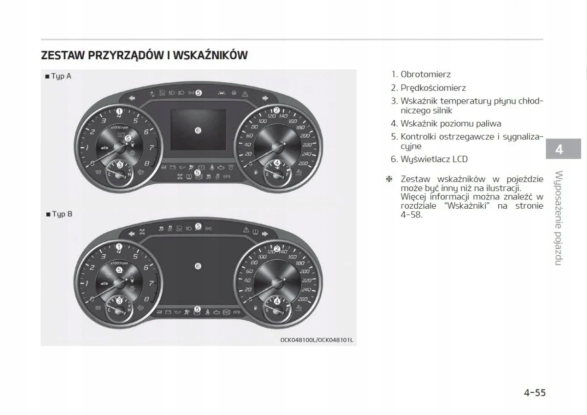 Посібник з експлуатації Kia містить усі версії обладнання та корисну інформацію про те, як ефективно та безпечно використовувати автомобіль, напр. - індикатори, світлові індикатори, відкриття та закриття - освітлення та видимість, сидіння, відділення для речей, опалення, вентиляція, кондиціонування повітря - водіння, поради з експлуатації, технічне обслуговування автомобіля - рівень рідини, перевірка та доливання, екстрені операції, заміна коліс, запобіжників, заміна лампочок - технічні дані... та багато іншого, що дає мандрівникам відчуття безпеки та комфорту. Польське законодавство зобов’язує продавця додавати до автомобіля інструкцію з експлуатації польською мовою. Посібник з експлуатації автомобіля новий і польською мовою.