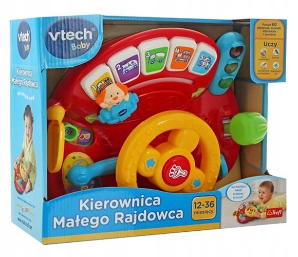 Міні-кермо VTech PL для ралійного автомобіля, яке дозволяє грати в рольові ігри, знайомить дитину з назвами транспортних засобів , тварини, кольори та числа. Завдяки цікавим фразам і реалістичним звукам машинки привертає увагу дитини. Крім того, він розвиває уяву дитини, повертаючи кермо, рухаючи транспортним засобом і мочиться на клаксон. Велике бічне дзеркало, кнопка акселератора та світлові фари забезпечують чудове задоволення.