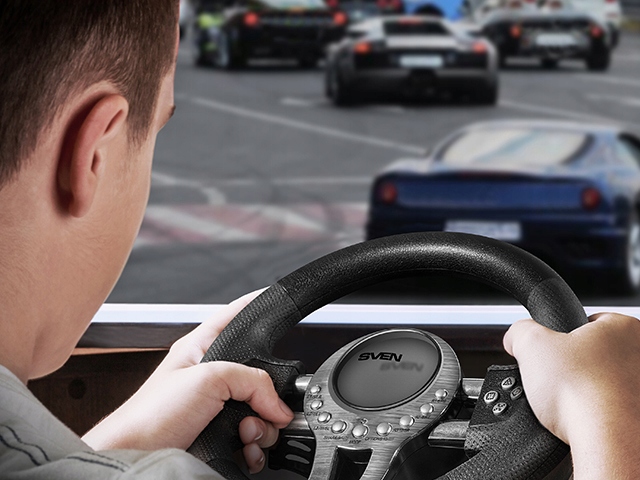 Ви не можете уявити собі керування автомобілем без педалей. У SVEN GC-W800 вони розміщені на спеціальній підставці, яка надійно розміститься на будь-якій підлозі. Педалі натискаються із значним зусиллям і забезпечують чудову імітацію водіння автомобіля.