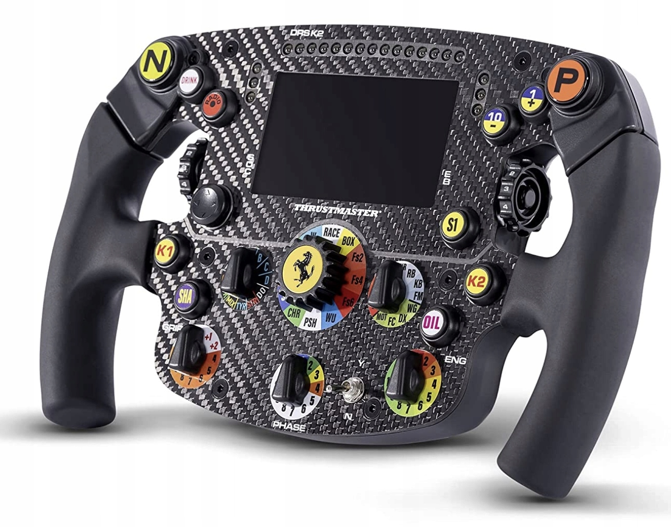 - Кермо Thrustmaster Formula SF1000 — ідеальне рішення для любителів гоночних симуляторів. Виготовлений поважним брендом Thrustmaster, він виготовлений з високоякісних матеріалів, таких як вуглецеве волокно або алюміній, що забезпечує довговічність і особливо реалістичне відчуття контролю.