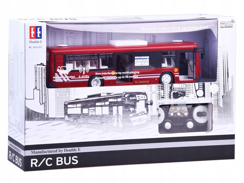 Іграшкою керує пульт дистанційного керування 2,4 ГГц. Пульт дистанційного керування забезпечує повний контроль над автобусом, вся робота маленького водія і автобуса буде легкою і під повним контролем. Дистанційне керування дозволяє їздити вперед, назад, повертати вліво і вправо. Як і належить справжньому транспортному засобу такого типу, автобус повинен мати двері, що автоматично відкриваються, якими керує водій. У цій моделі двері відкриваються за допомогою спеціальної кнопки на пульті! Яскраве переднє світлодіодне освітлення чудово виглядає в темній кімнаті. Автомобіль оснащений колесами 3 см. Живлення автобуса здійснюється від акумулятора, що входить в комплект, що значно знизить експлуатаційні витрати.