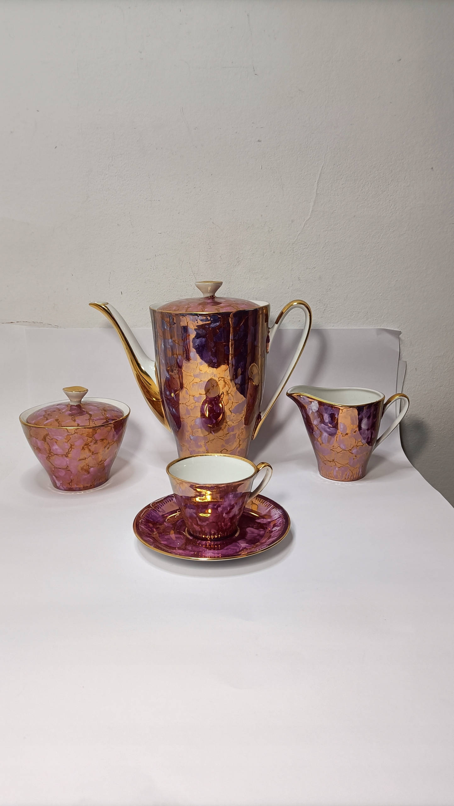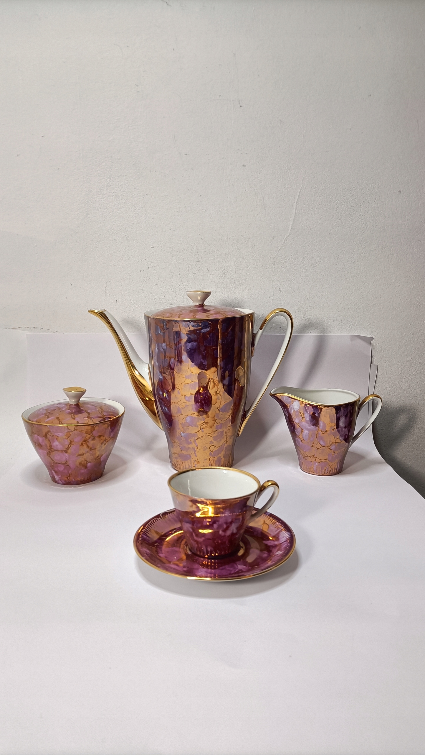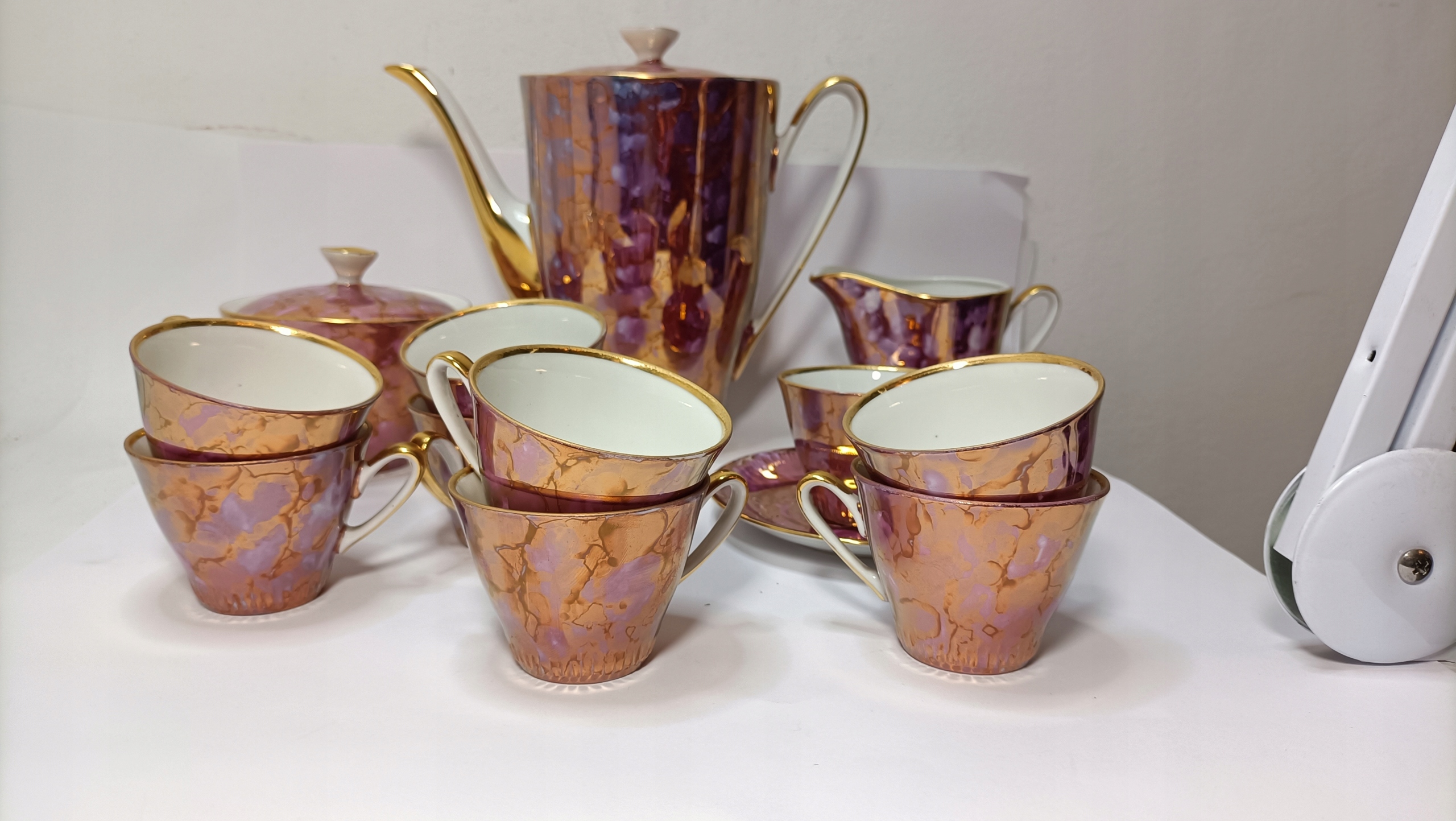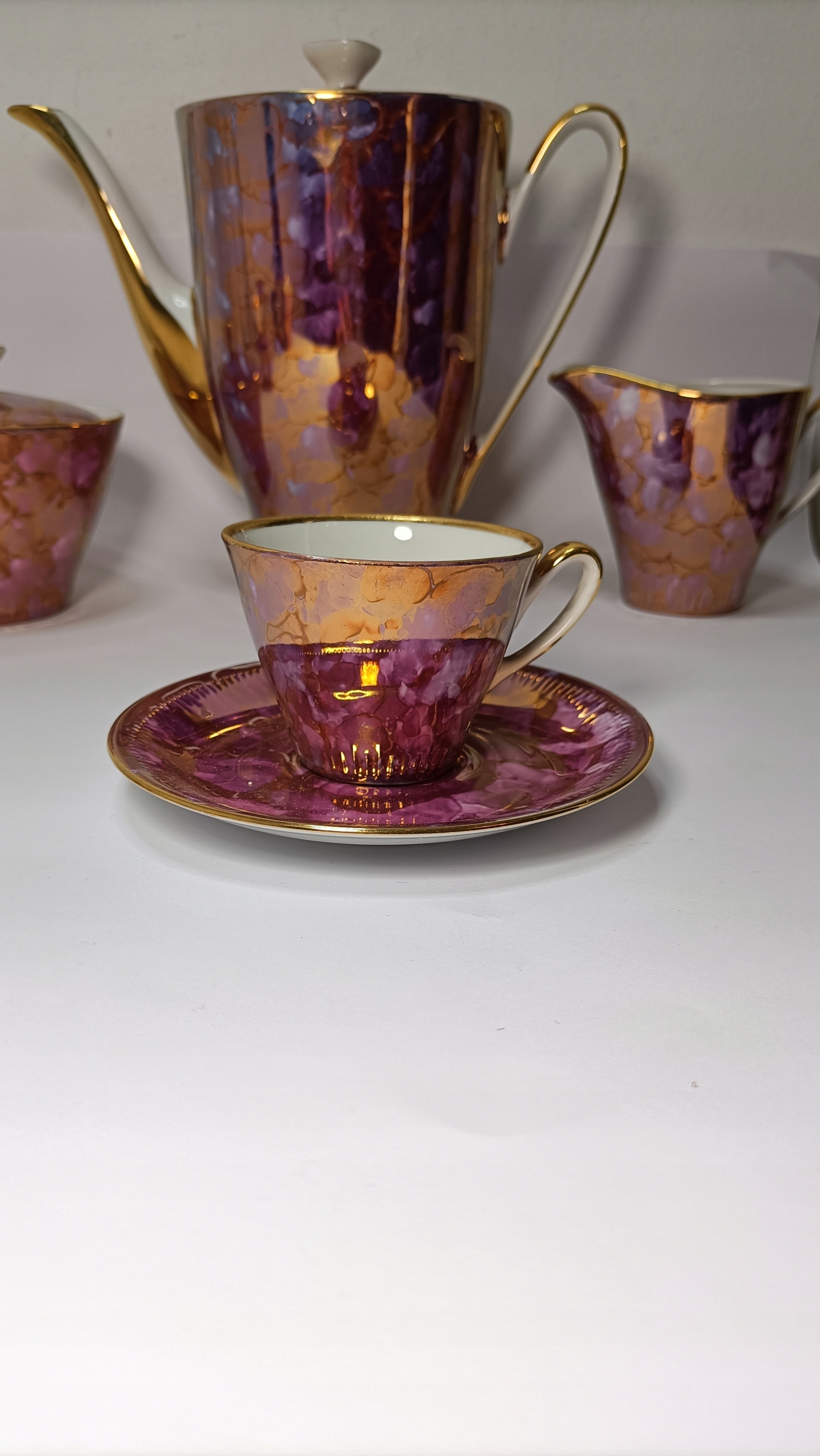 Сервіз складається з глечика, молочника, цукорниці та одинадцяти чашок з блюдцями.