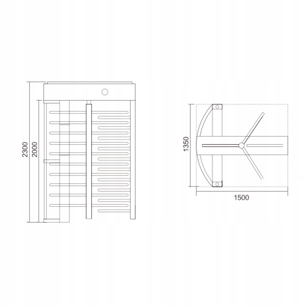 - Розміри: 1350 x 1500 x 2300 мм (ширина схрещування 650 мм)