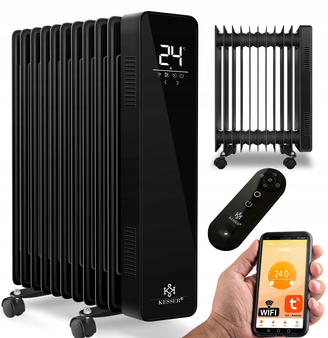 нафтового радіатора Kesser 2500w від Wifismarthome - застосування та пульта дистанційного керування, світлодіодний дисплей з таймером, щотижневим графіком та термостатом, захистом від повороту та захисту від дітей, обігріває до 6 хвилин