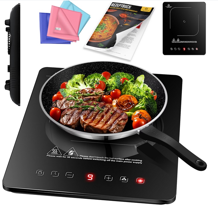 індукційна плита Kesser® індукція HOW 1 тарілка 2100 Вт, портативна нагрівальна пластина 28 см 9 градусів нагріву, 8-годинний таймер,