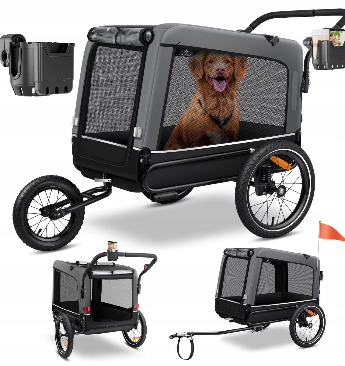 Велосипедний причіп Kesser Boxer 3in1 -це багатофункціональний транспортер, який ви можете використовувати як велосипедний причіп, баггі або коляска бігуна. Ідеально підходить для маленьких та середніх собак, а також для старих чотириногих, після лікування або з обмеженою рухливістю. Переваги продукту