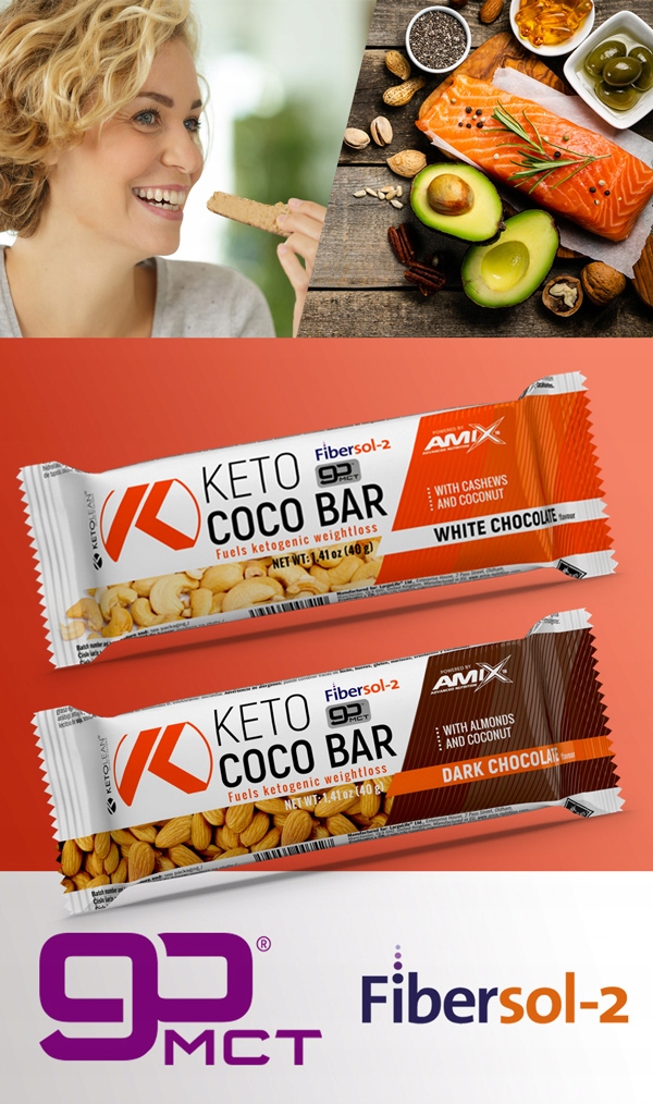 Amix Keto Coco Bar використовує передову технологію у вигляді доданих MCTs, пребіотиків і клітковини для підтримки вашої кетогенної дієти на кожному кроці. Ключовим інгредієнтом цих батончиків є GoMCT® - порошкоподібна олія MCT, яка містить найякісніші жирні кислоти MCT C8 і C10. Ці спеціально підібрані кислоти мають здатність швидко засвоюватися, переходячи безпосередньо з травного тракту в кров, а потім у печінку, що є вирішальним для швидкого постачання енергії та ефективного виробництва кетонів.