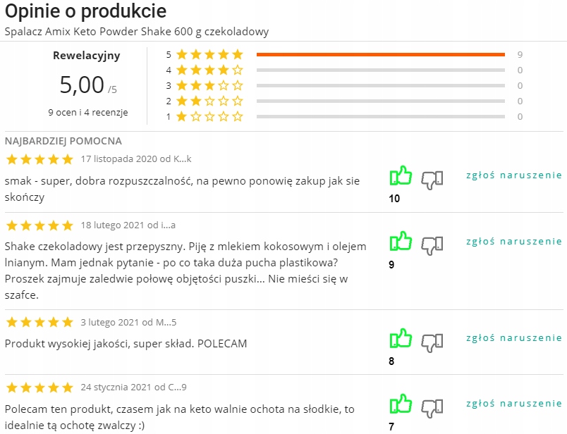 Думки про Amix Keto Lean Powder Shake 600g прямо від Allegro:
