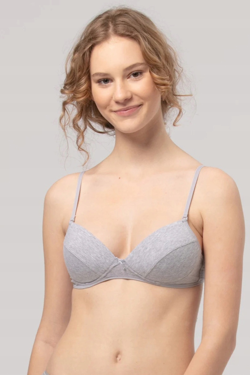 бюстгальтер для підлітків без попереднього проїзду. Чашки жорсткі з м'якою губкою, спеціальним зшиванням на місці підвіту. Розріз ідеально підходить для підлітків у віці 11-15 років. Пояс ланцюга в кожній з наших моделей виготовлений з м'якої бавовни, щоб він стабільно оточував тіло і що шкіра дихає вільно і не зазнала потертостей, особливо влітку або з підвищенням фізичних зусиль. Інтер'єр мисків вистелений бавовною, оскільки це найбільш природний матеріал, який прилягає до нашої шкіри, дозволяє йому дихати і приємний на дотик.