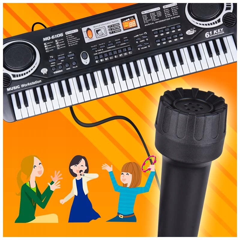 KEYBOARD PIANINKO ORGANY PIANINO ELEKTRONICZNE 61 KLAW DLA DZIECI +MIKROFON