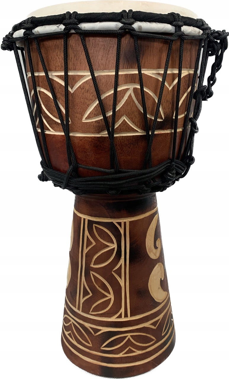 Джембе серії Entry Level пофарбовано на корпус джембе та нижню частину барабана. Він чудово виглядає та привертає увагу для барабанщиків та початківців. Він виготовлений із червоного дерева.