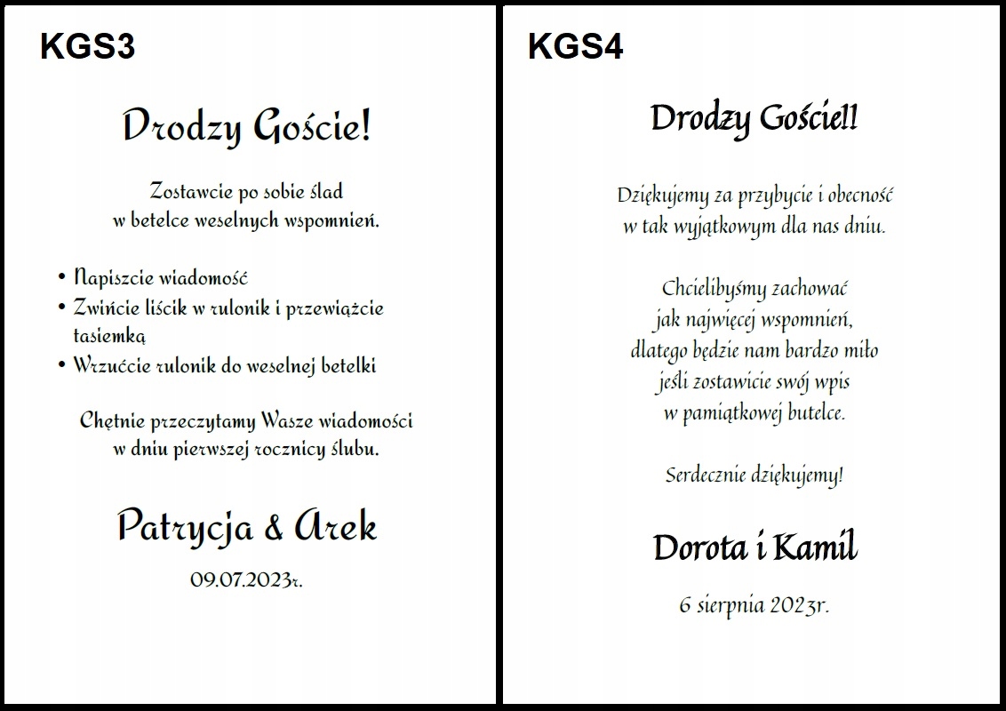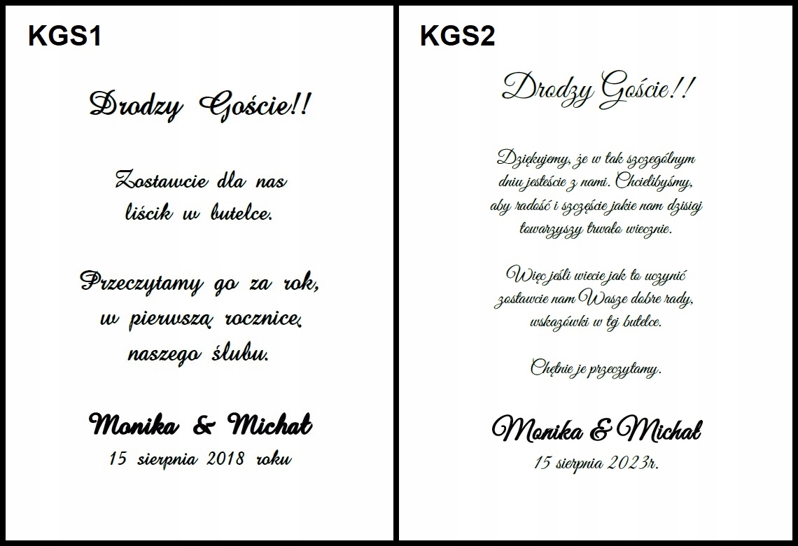 - назву наречений і наречена та дата святкування.