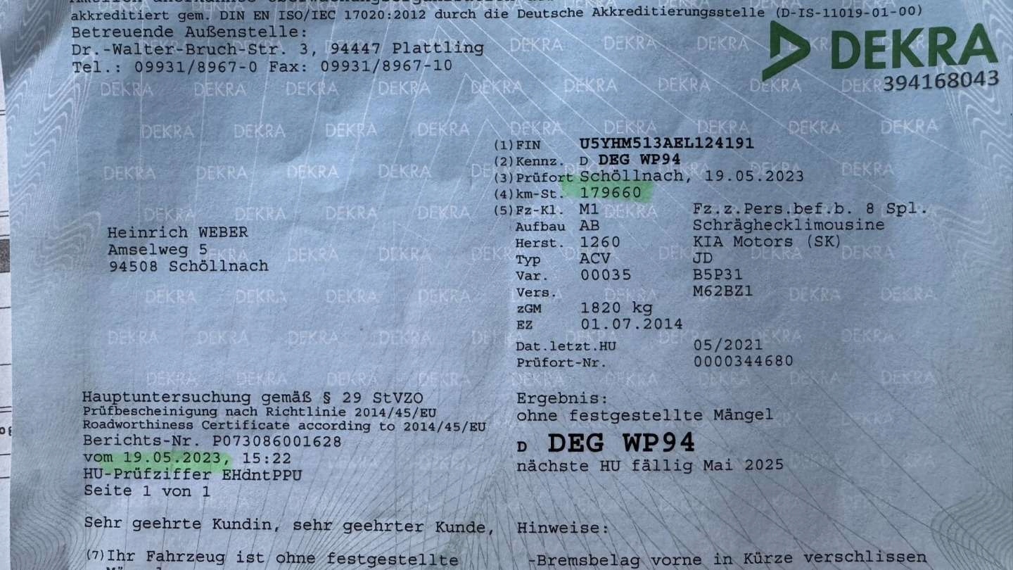 Привіт, тема продажу - Kia CEED 1,6 бензин 135 км 2014 року. Автомобільна аварія -технічно та візуально у дуже хорошому стані. Фарбування покриття з оригіналу перевіряється за допомогою лаку. Всі вікна з оригіналу. Інтер'єр чистий і охайний. Двозонний ефективний клімат. Курс, задокументований за допомогою TUV Print та рахунків -фактур з веб -сайту KIA. 2 ключі. Нещодавно замінив акумулятор новим.