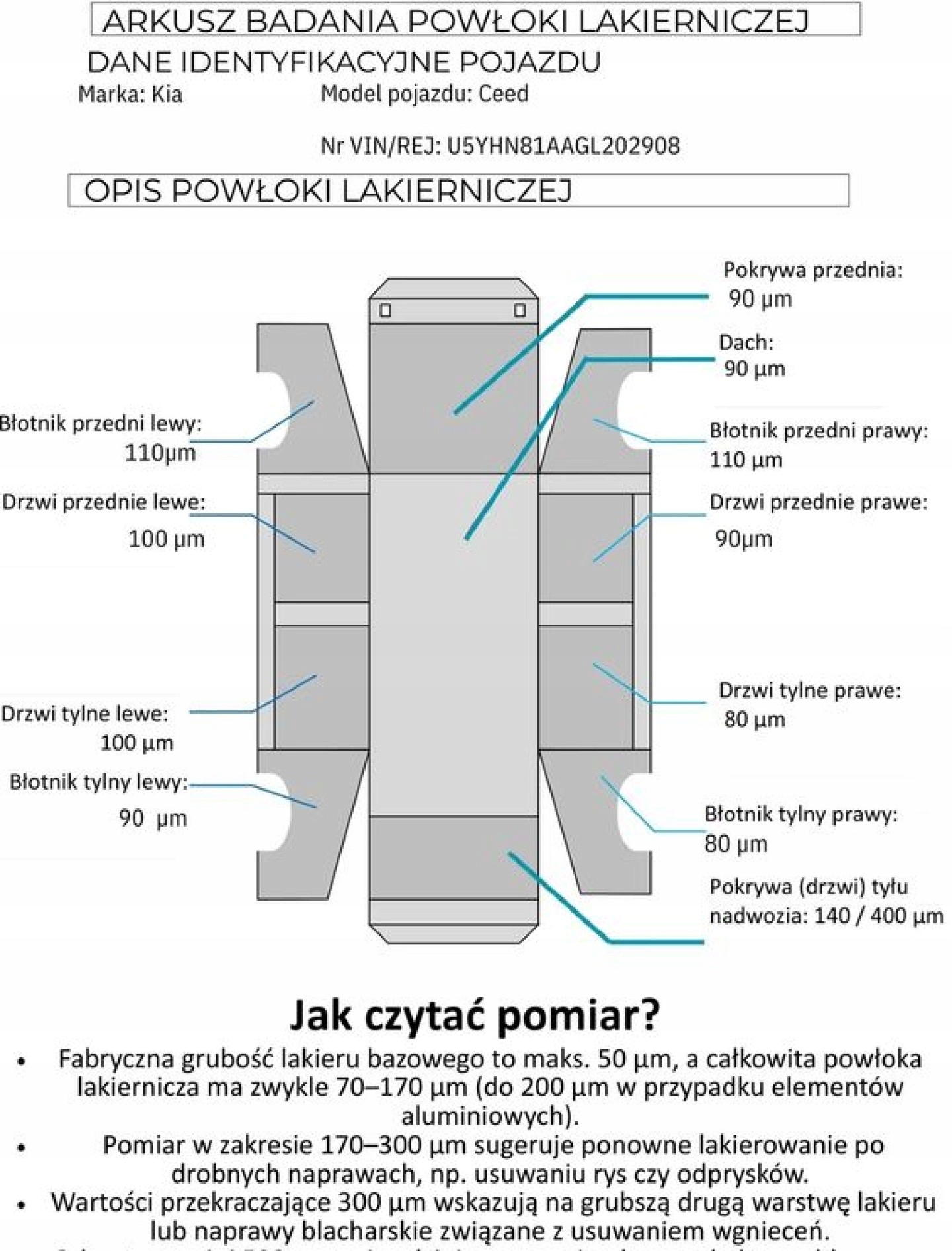 ✅ Перед продажем кожен автомобіль ретельно перевіряється на наявність механічних несправностей і стану фарби. На фотографії показано тестовий аркуш лакофарбового покриття та його товщину.