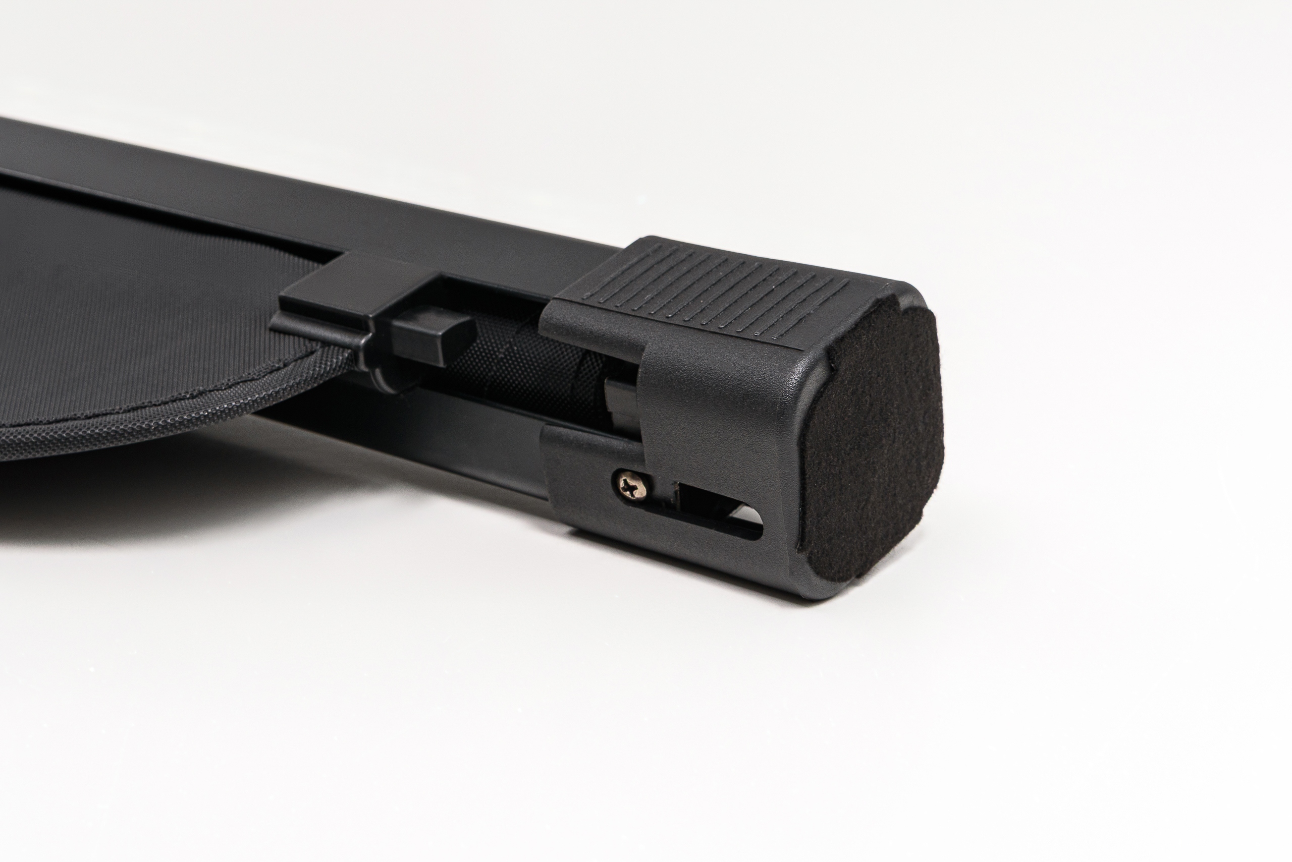Суцільна касета та алюмінієва пластина забезпечують довговічність конструкції та зручність використання жалюзі. Касета була розроблена таким чином, щоб дозволити стабільне кріплення в оригінальних, заводських місцях за задніми сидіннями.