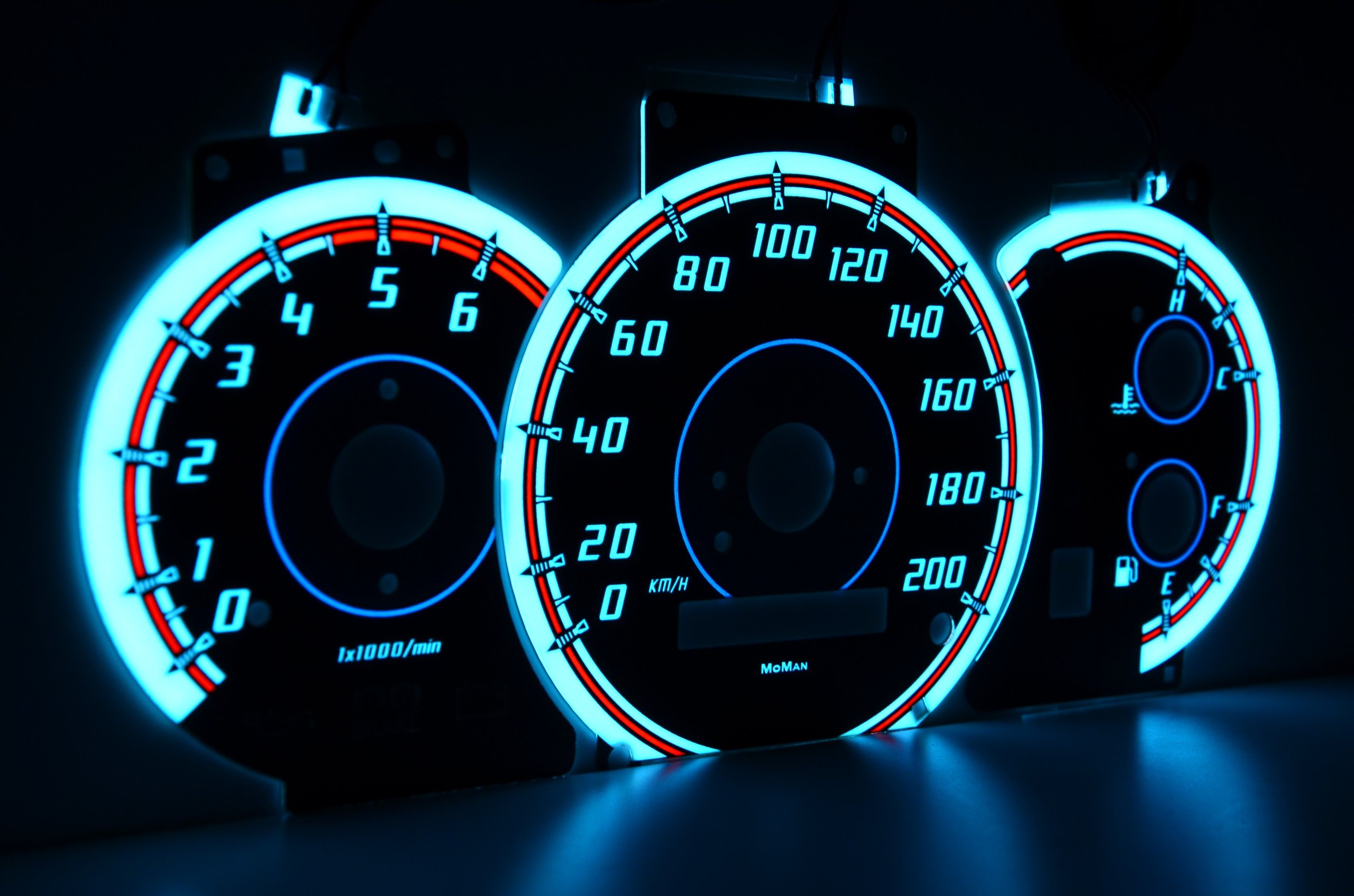 Наші диски зроблять ваш автомобіль ще кращим, а одометр придбає новий вигляд. У дисках INDIGLO освітлювальним елементом є сама фольга INDIGLO товщиною всього 0,5 мм, яка збуджується високою напругою з інвертора. Фольга рівномірно світиться по всій поверхні (а не плямами, як світлодіодне освітлення). Це не світлодіодне підсвічування знизу або зверху з фольги або світлопроникного оргскла, немає необхідності встановлювати додаткові діоди та лампочки. Побачте на власні очі дивовижний колір плазмового світла, суперконтраст і унікальні кольори.