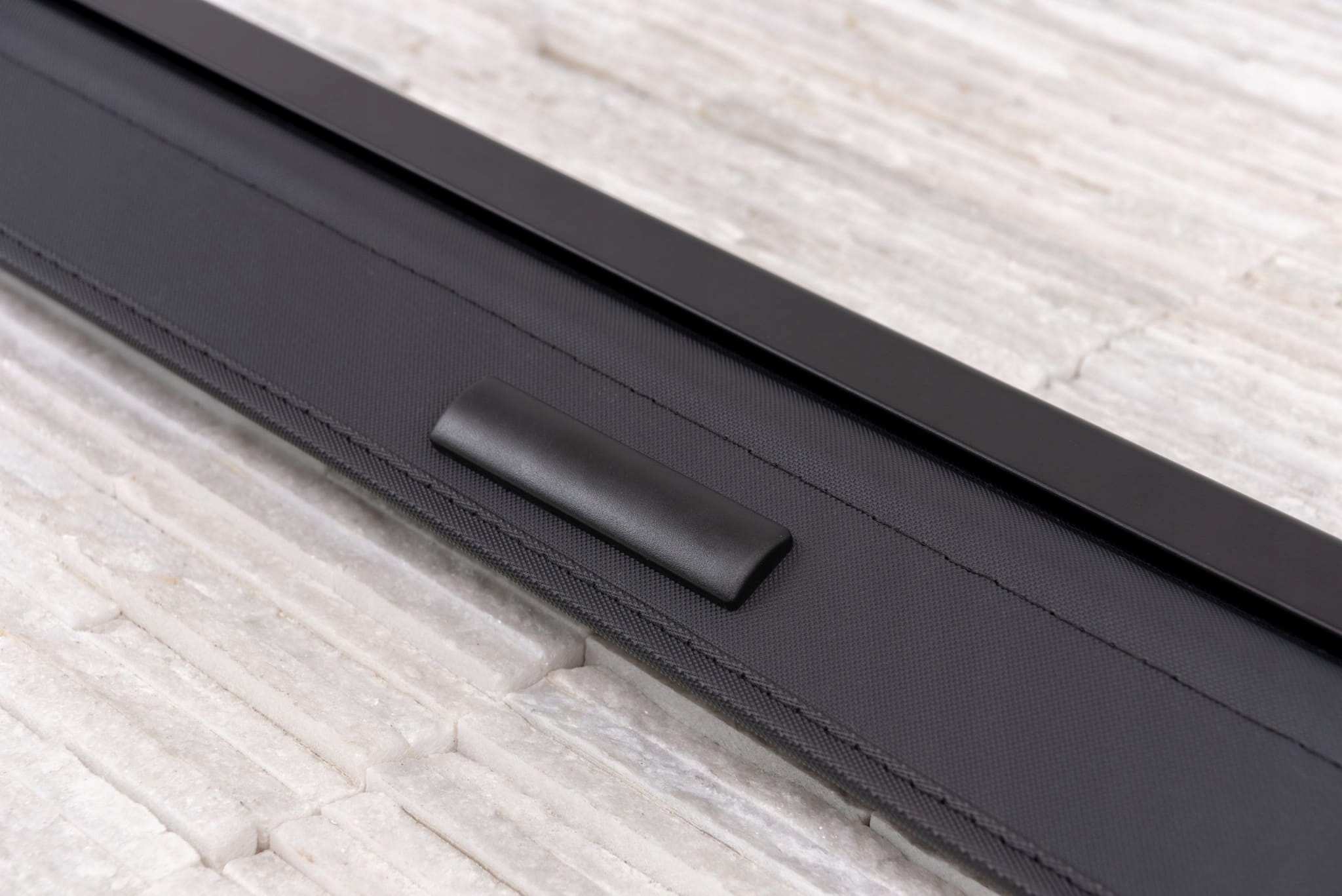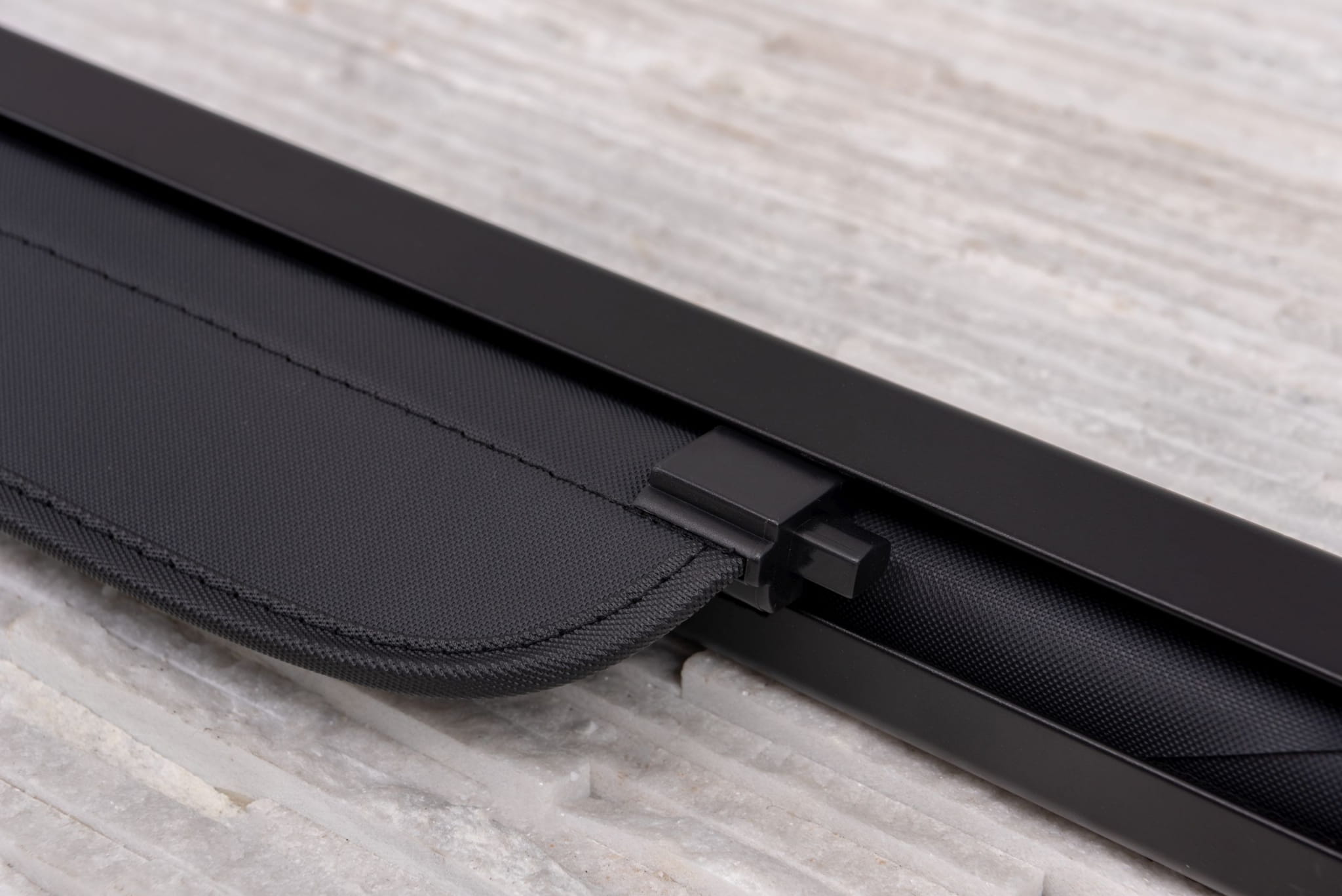 Міцна касета та алюмінієва пластина забезпечують довговічність конструкції та комфорт використання рулонної штори. Касета розроблена таким чином, щоб забезпечити її стабільне кріплення за допомогою додаткових кріплень за задніми сидіннями.