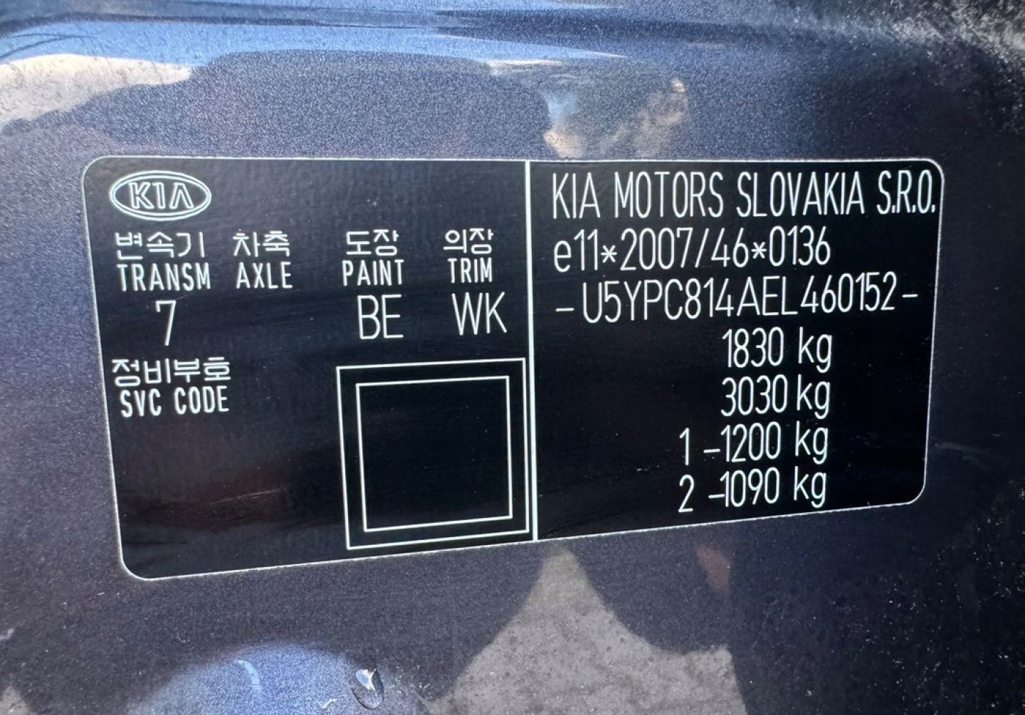 Легенда служби, яка підтверджує VIN № в ASO Kia