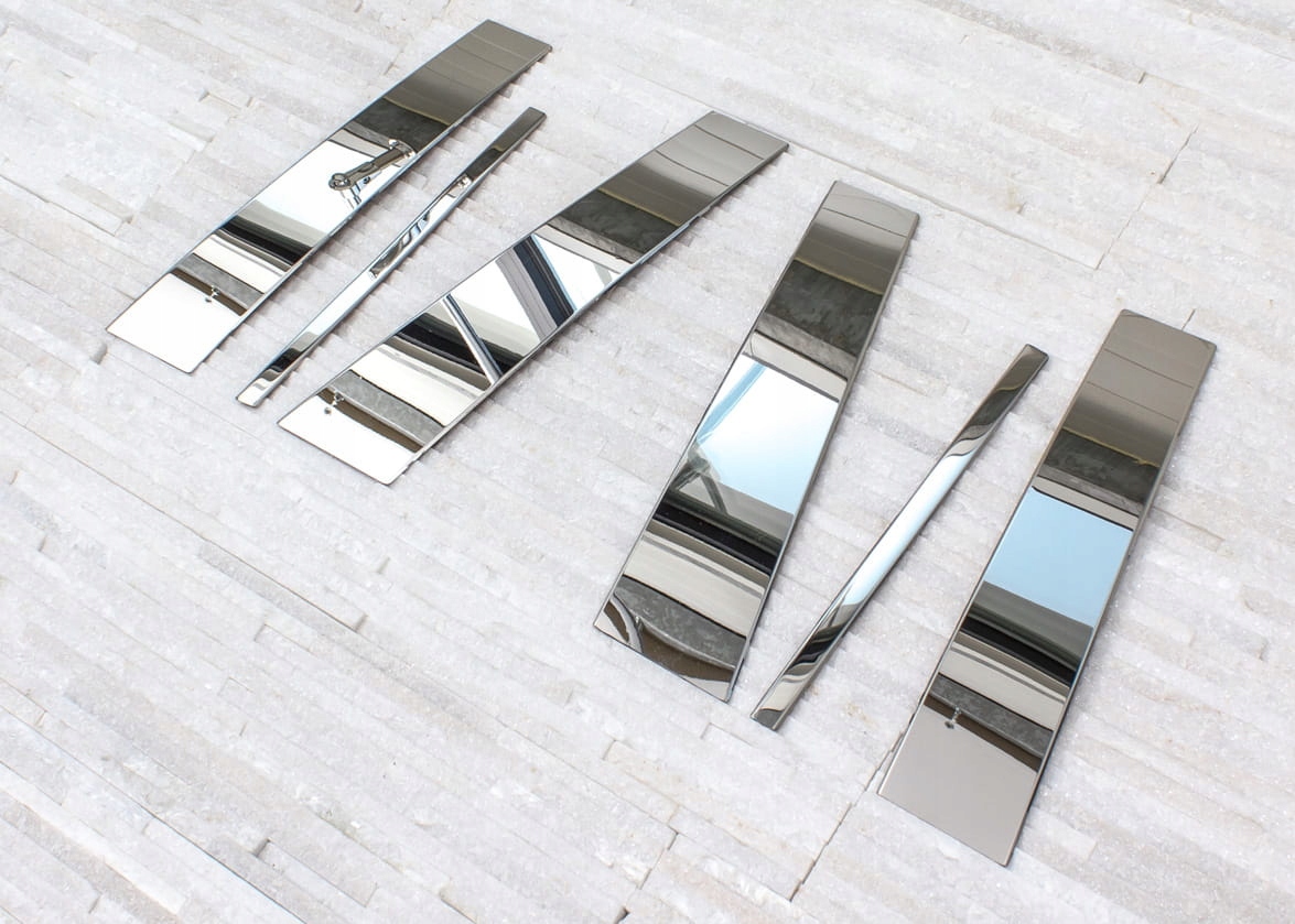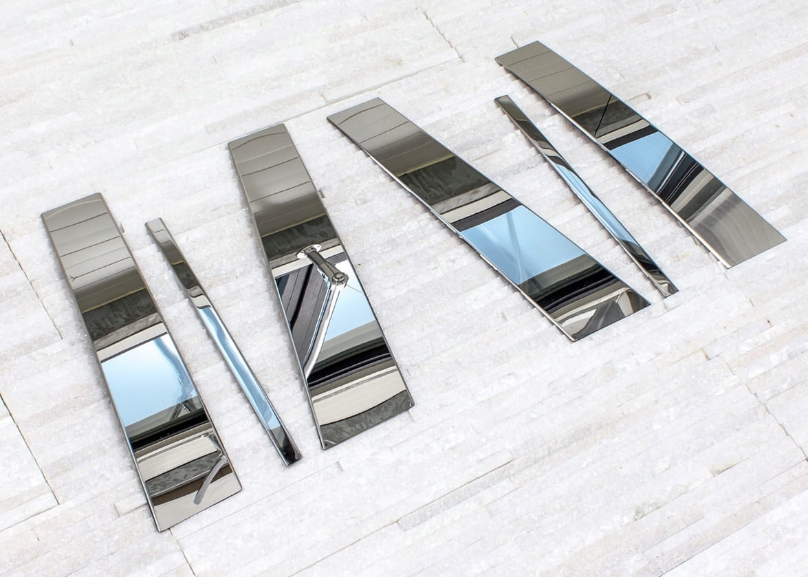 продукт, виготовлений з високоякісної відшліфованої нержавіючої сталі. Набір складається з 6 елементів. Вони встановлені двосторонньою 3 -метровою клейкою стрічкою, нанесеною на внутрішню частину елементів. Вони застосовуються на знежирену поверхню з видобутком бензину або духу, при позитивних температурах від 18 градусів C. Ми рекомендуємо професійну збірку.