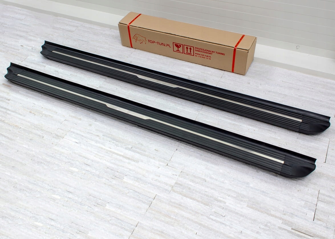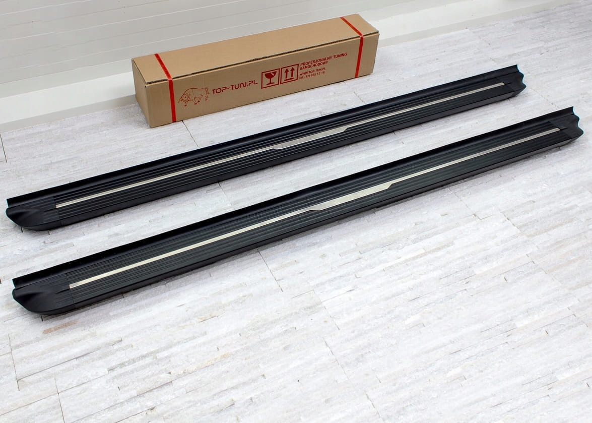 Бічні підніжки були розроблені для підвищення комфорту під час посадки та виходу з автомобіля, а також для більш зручного робочого положення при розміщенні вантажу на даху автомобіля. Пороги не тільки забезпечують комфорт, але і підвищують безпеку, що особливо важливо для дітей і людей похилого віку.