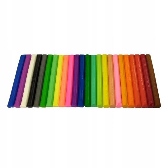 М'яка та гнучка консистенція дозволяє легко формувати різні форми. Він не висихає, тому його можна використовувати тривалий час. У наборі 24 кольори, в тому числі 12 неонових кольорів у формі зручних маленьких циліндрів.