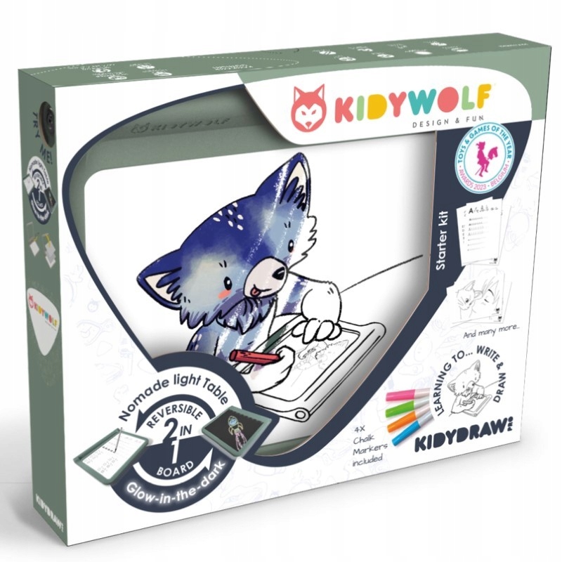 Заглавний планшет з підсвічуванням з Kydywolf-це інноваційний навчальний інструмент, який підтримує розвиток навичок письма та малювання у дітей. Це легкий, портативний пристрій, який поєднує в собі навчання, пропонуючи інтерактивний досвід, який, безумовно, приверне увагу наймолодших.