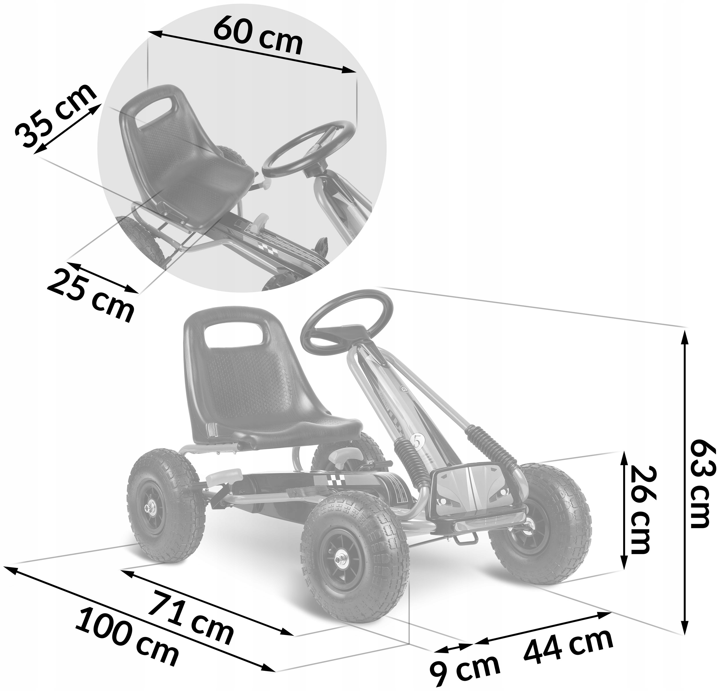 KIDS GO KART ПЕДАЛІ НАКАЧАНІ КОЛЕСА ТВЕРДІ