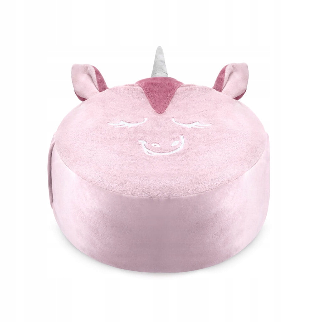 Пуф міні-єдиноріг — унікальне сидіння для кожної дівчини! Його компактні розміри означають, що він поміститься навіть у найменшій дитячій кімнаті. Він має вшиту збоку зручну ручку, завдяки якій малюк може легко носити його куди завгодно.