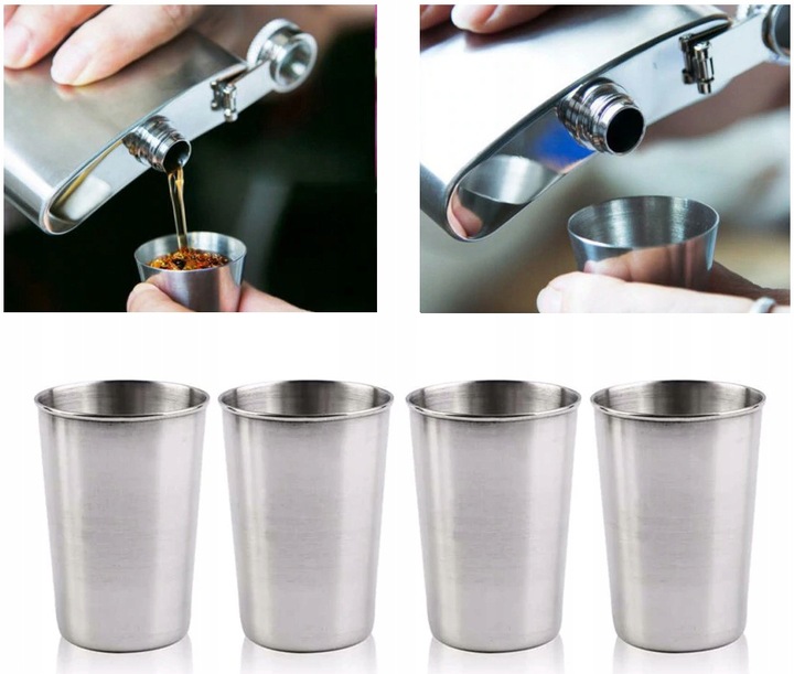 KIELISZKI TURYSTYCZNE STALOWE METALOWE 70ml KOMPLET 4 Sztuki + ETUI